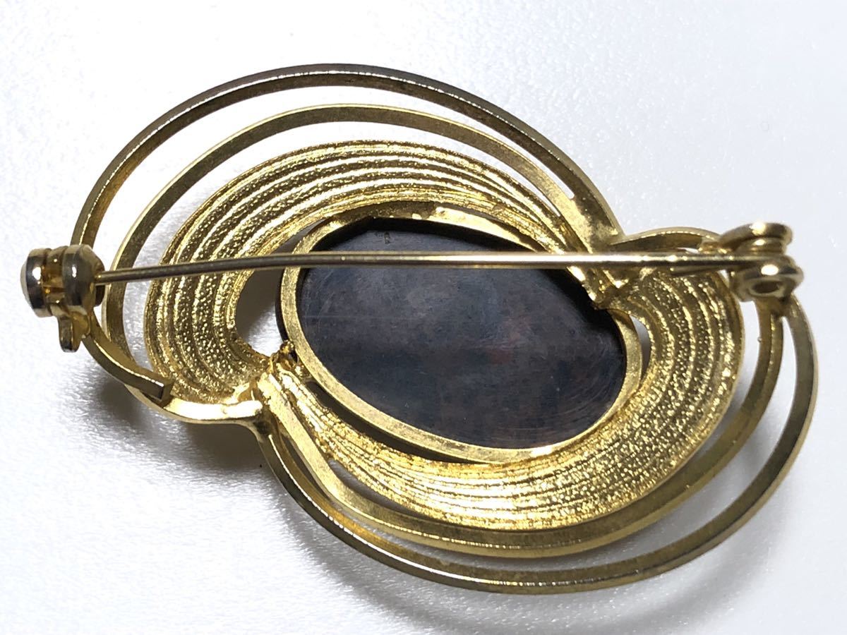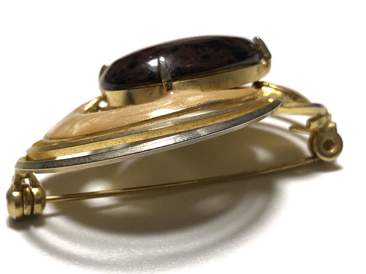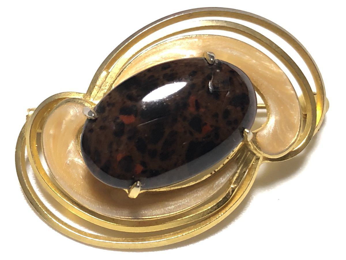 紅十勝石、エナメルを使用した、デザインブローチです。