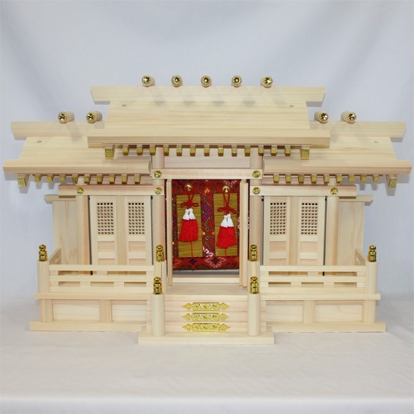 神棚中央の扉の内部に御簾(みす)と言われる装飾を施しています。