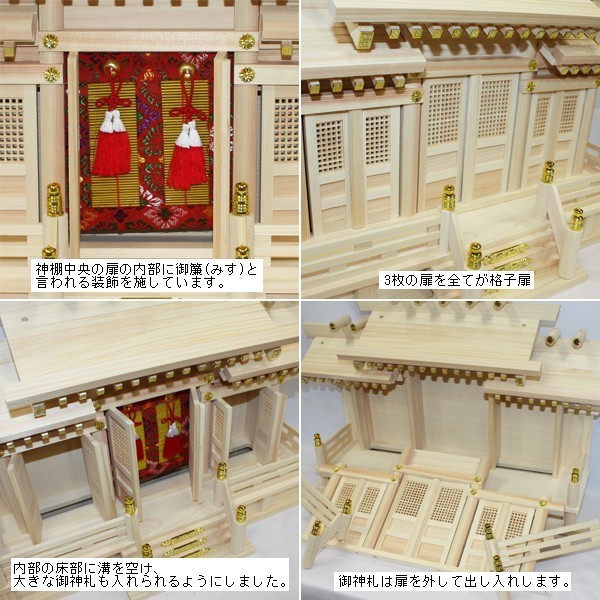 社の内部の床部に溝を空け、大きな御神札も入れられるようにしました。