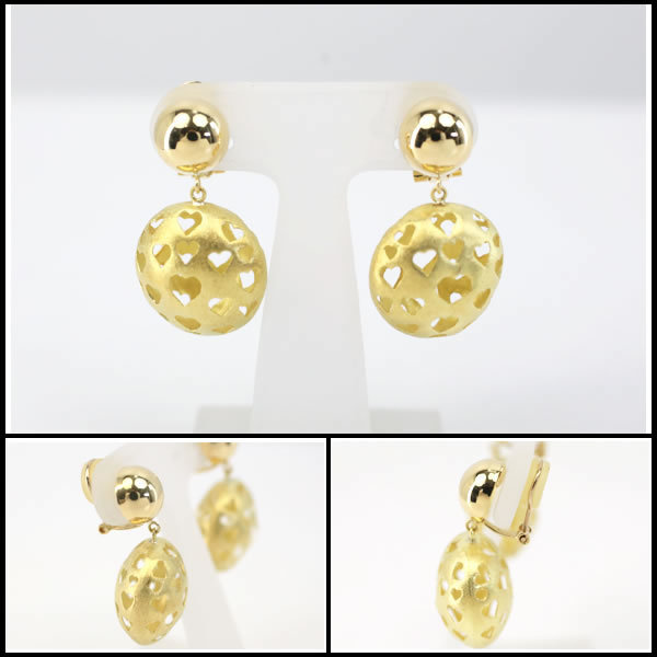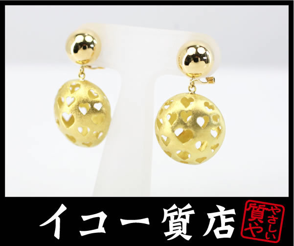 商品名 | K18 ★1点もの ハート透かしデザイン イヤリング シリコンクリップ式 新品仕上げ済み 美品 |