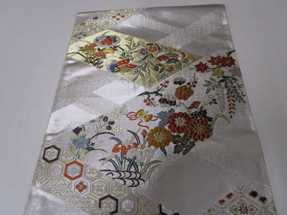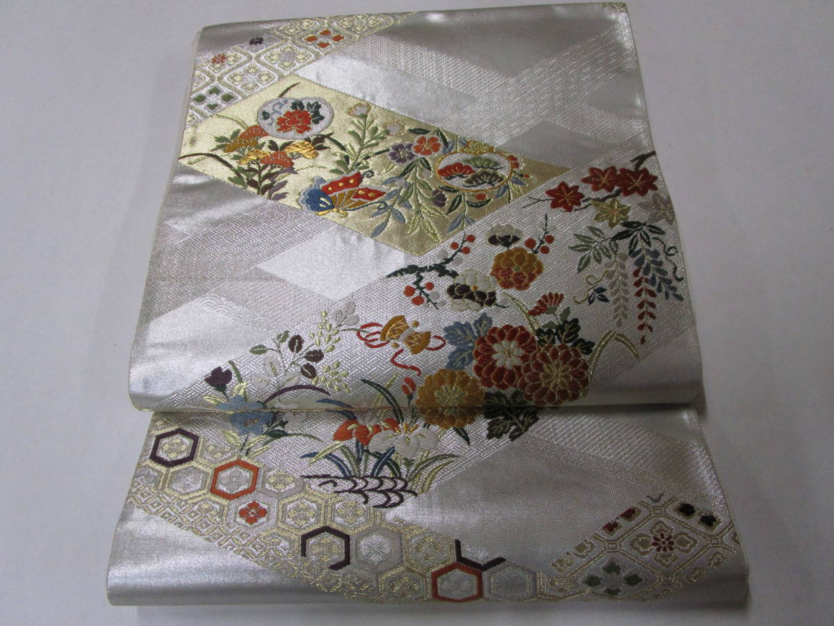 新品 未仕立品 未使用の西陣織 正絹豪華袋帯 銀箔地です。