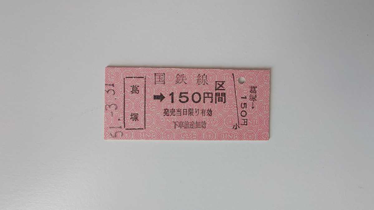△国鉄・駅名改称最終日△葛塚→150円区間乗車券△B型硬券昭和51年