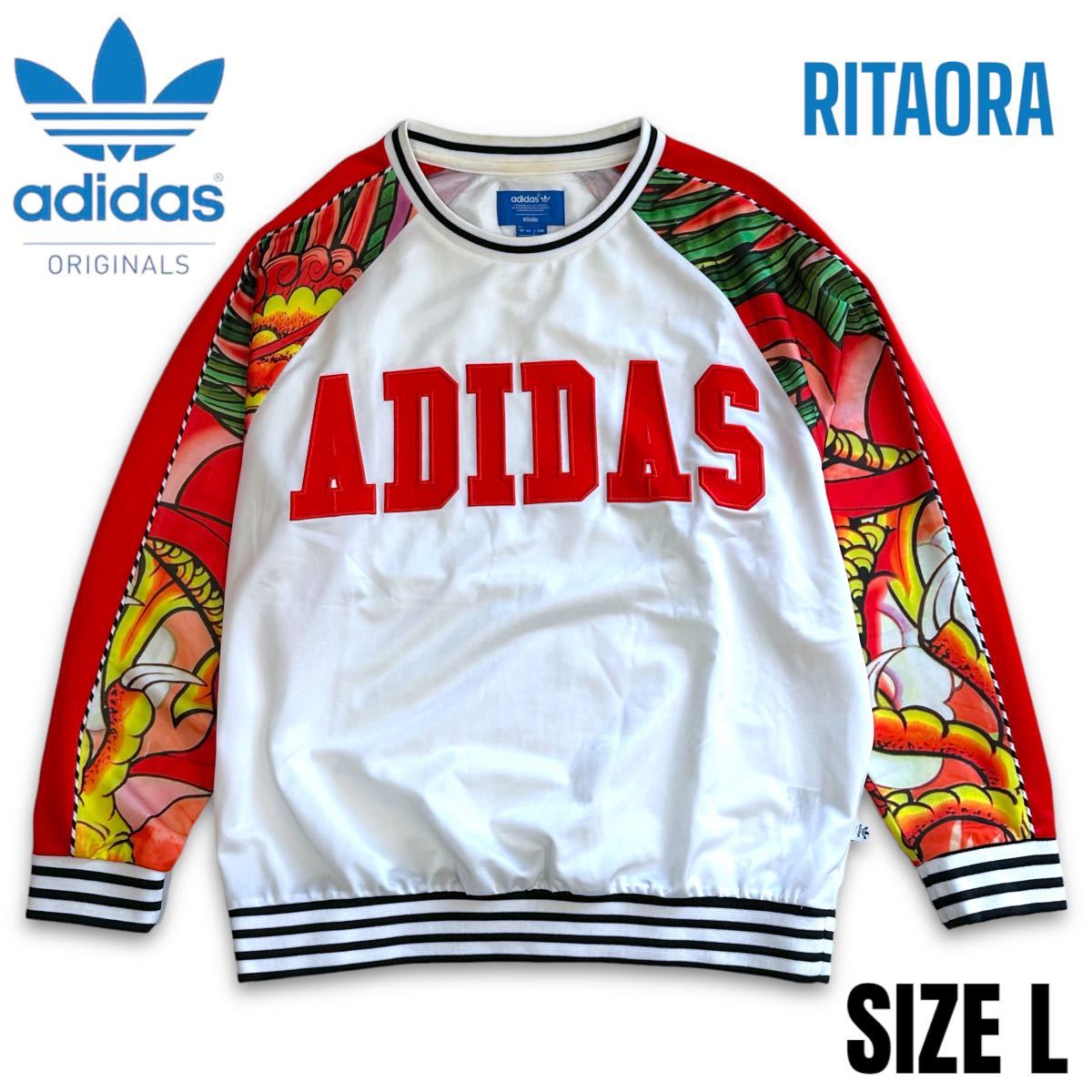 希少■adidas (アディダス オリジナルス)× Rita Ora (リタオラ) Dragon ドラゴン 長袖 スカジャン ジャージ スウェット L 白赤 [S23578]