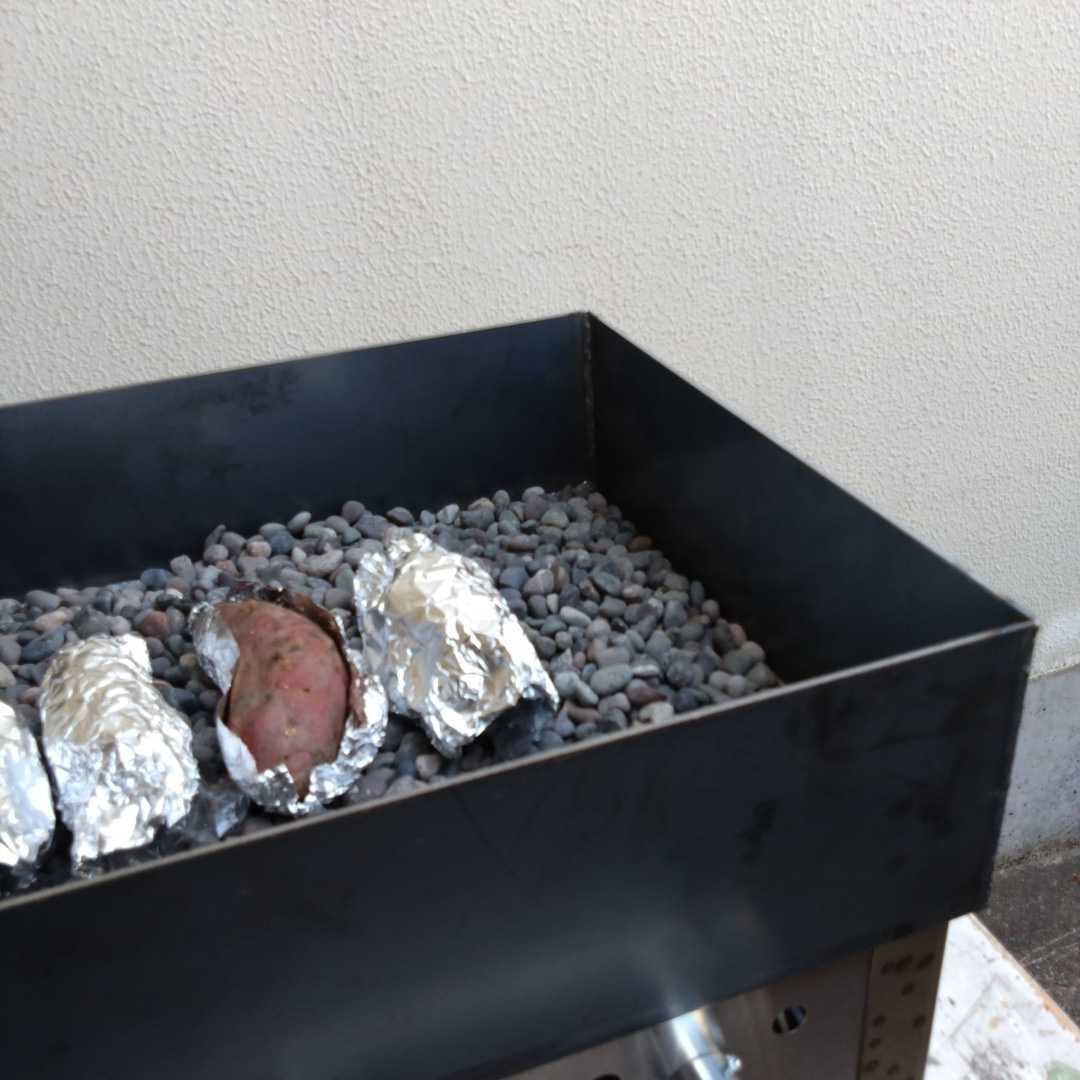 石焼きいもが焼ける鉄板釜とガスグリラーのセットです。