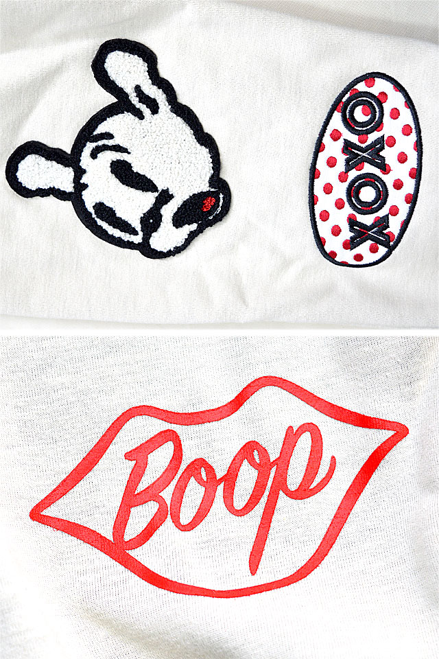 ロウブロウナックルから「エンジェルBETTYボンディングスタジャン(592868)」のご紹介です。 大きな瞳とぽってりした赤い唇が印象的な女の子、ベティ・ブープ(Betty Boop)。 弾力のある肉厚なボンディングスタジャンをボディーに採用しました。 フロントはスナップボタン仕様。 | ||||||||||||||||||||||||||