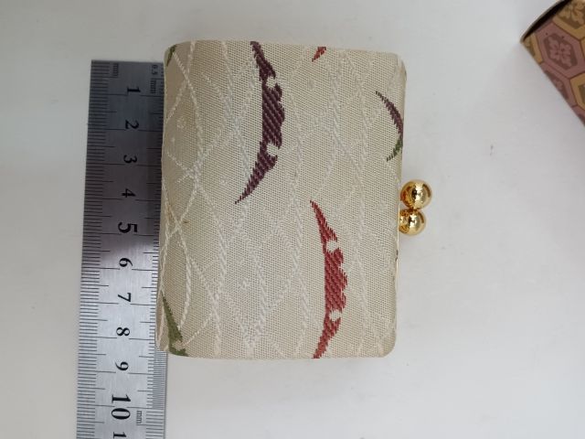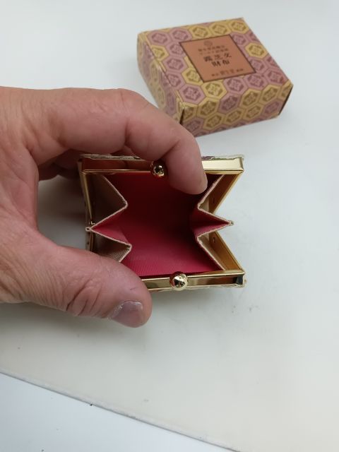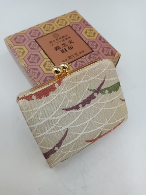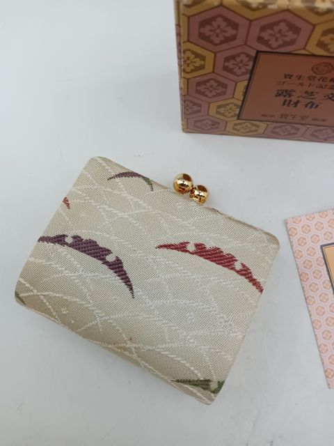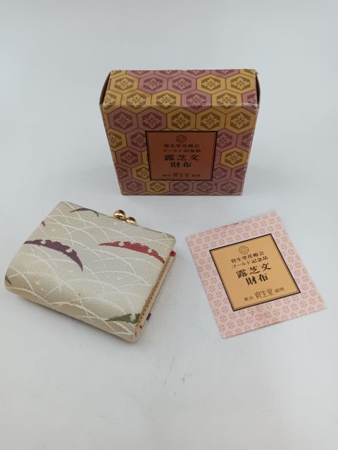 1023-0020  中古★昭和レトロ 資生堂 花椿会 ゴールド記念品 露芝文 ミニ 財布 がま口 小銭入れ 7.6cm×6.2cm