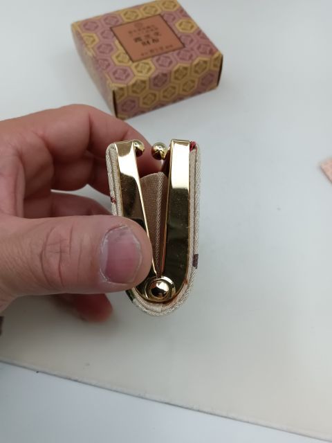 0718-0020  中古★昭和レトロ 資生堂 花椿会 ゴールド記念品 露芝文 ミニ 財布 がま口 小銭入れ 7.6cm×6.2cm