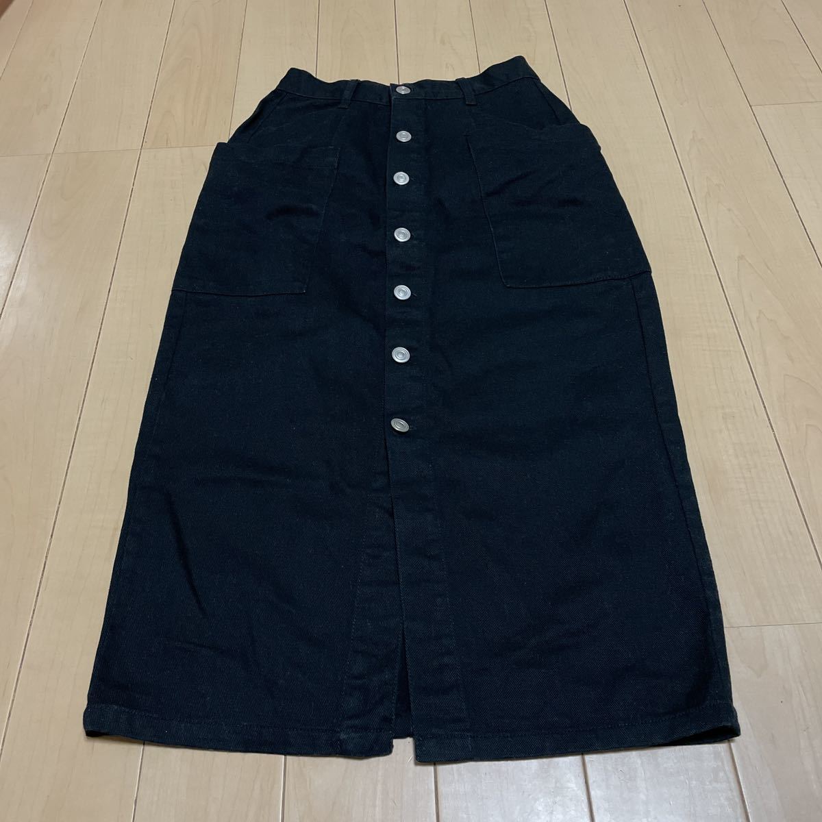 ブラックデニム生地のロングスカートです。