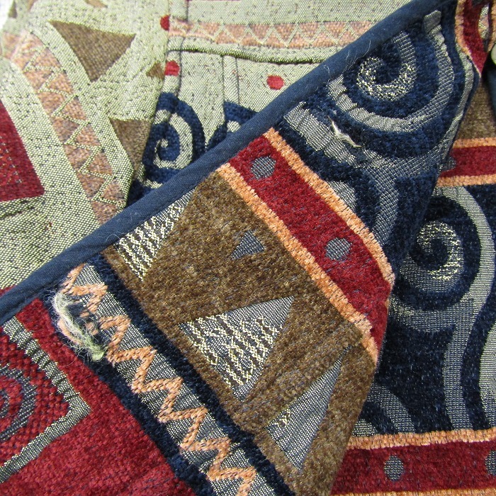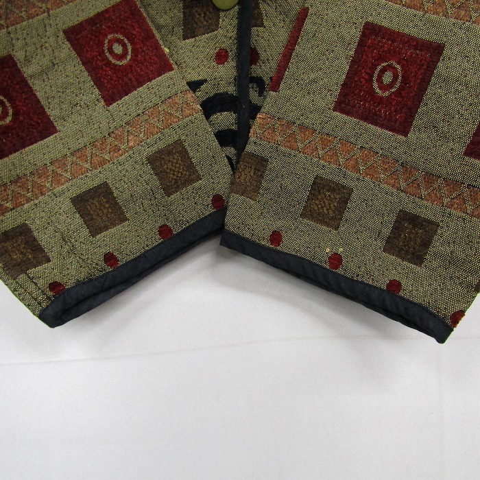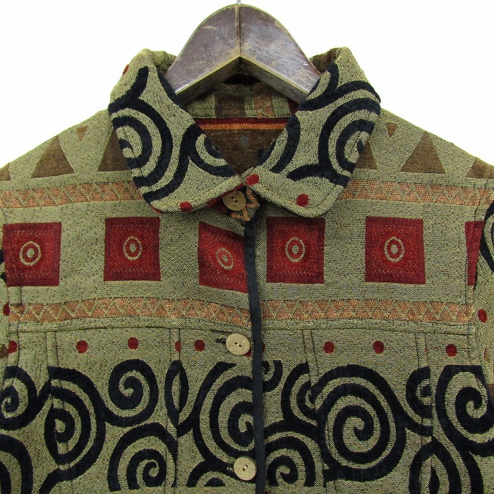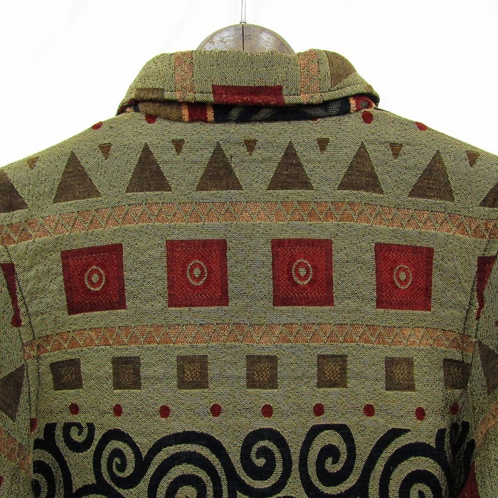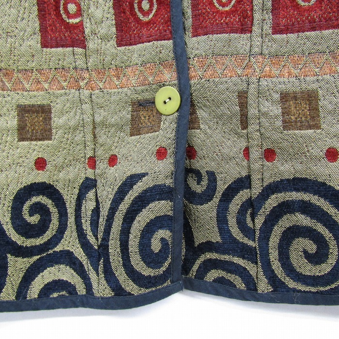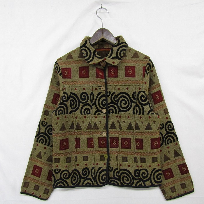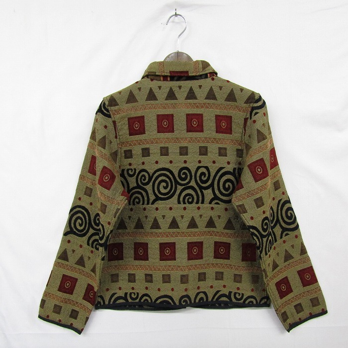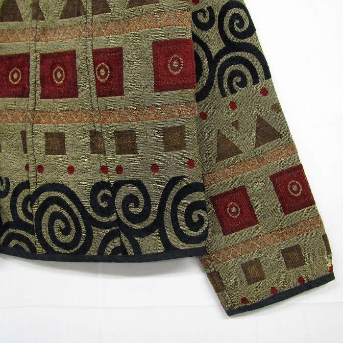 Vintage サイズ M~ ゴブラン 織り デザイン ジャケット パイピング 総柄 幾何学模様 ブラウン系 レディース 古着 ビンテージ 2N2459