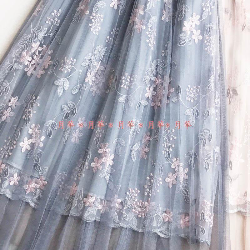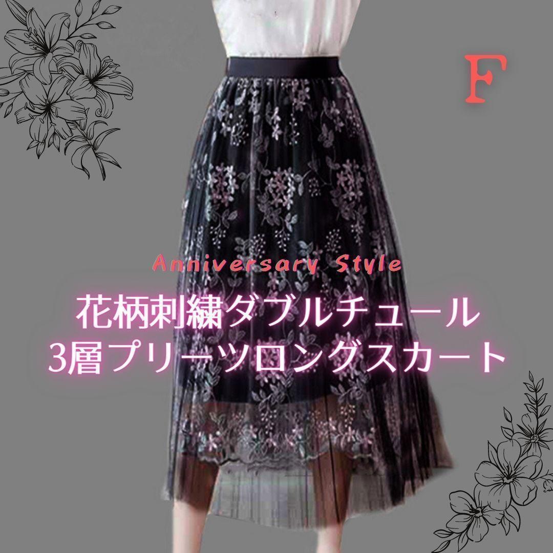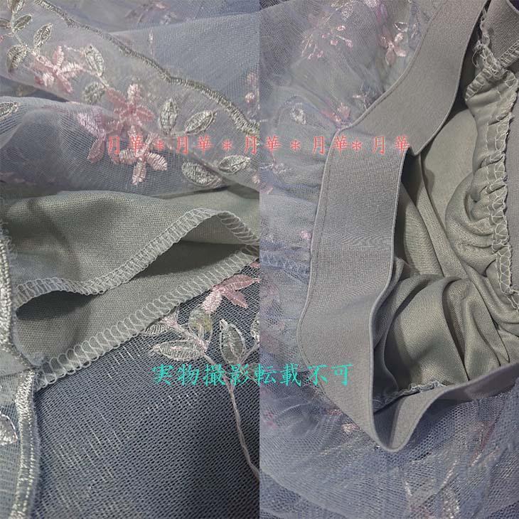 無地裏地・メッシュ花柄刺繍・プリーツチュールの3層仕立てスカート。
