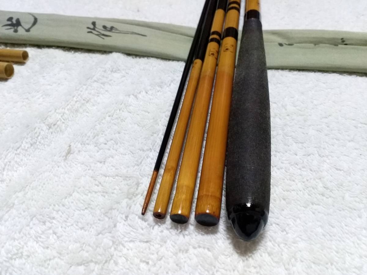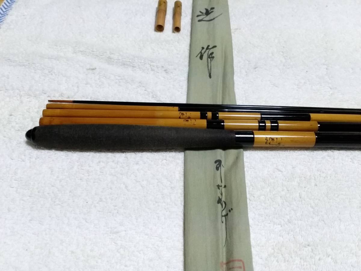 付属品は画像の通り、オリジナルの口栓、竿袋になります。になります。竿の状態ですが、口割れ、欠け、深い傷などなく綺麗です。薄い傷が有るかも知れませんが、艶もありとても良い状態だと思います。私感的には非常に綺麗な状態だと思います。3番の込みに少し薄い傷があります。繋げは分かりませんし使用には問題ありません。オークション終了後48時間以内にご連絡の方のみご入札下さい。落札後取り引きナビにてご連絡させて頂きます。ご入札後のキャンセル、返品。クレーム等受付られません。送料はヤマト運輸の元払いで、九州から関東まで1600円です。宜しくお願いします。元竿14.1ミリ 穂先 4ミリです。