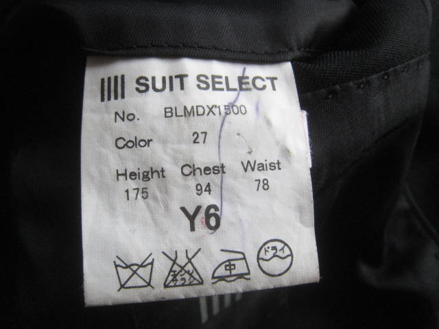 美品!!スーツセレクト SUIT SELECT*ポリウール 2つボタンブラックスーツ Y6 実寸M 黒 冠婚葬祭にも