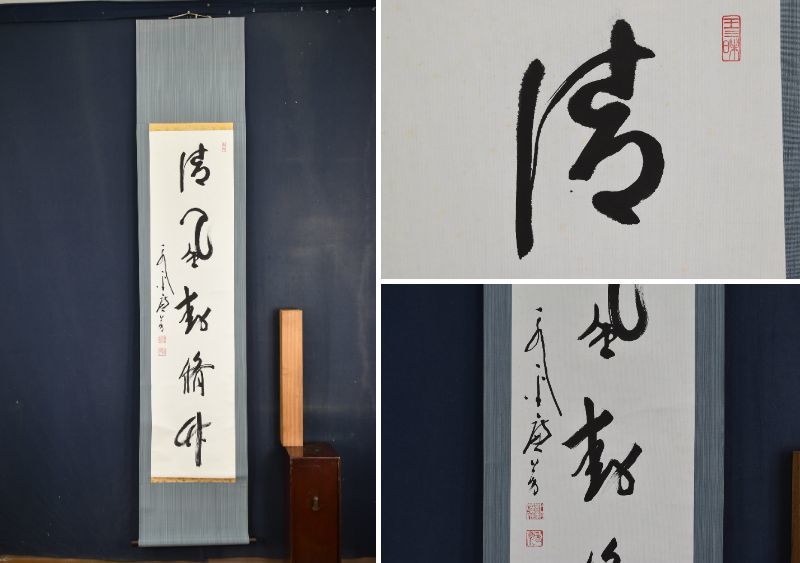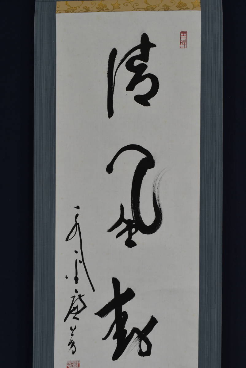 真作/永平寺管長 丹羽廉芳/一行書/清風動修竹/茶道具/茶掛/禅語//掛軸☆宝船☆AA-871