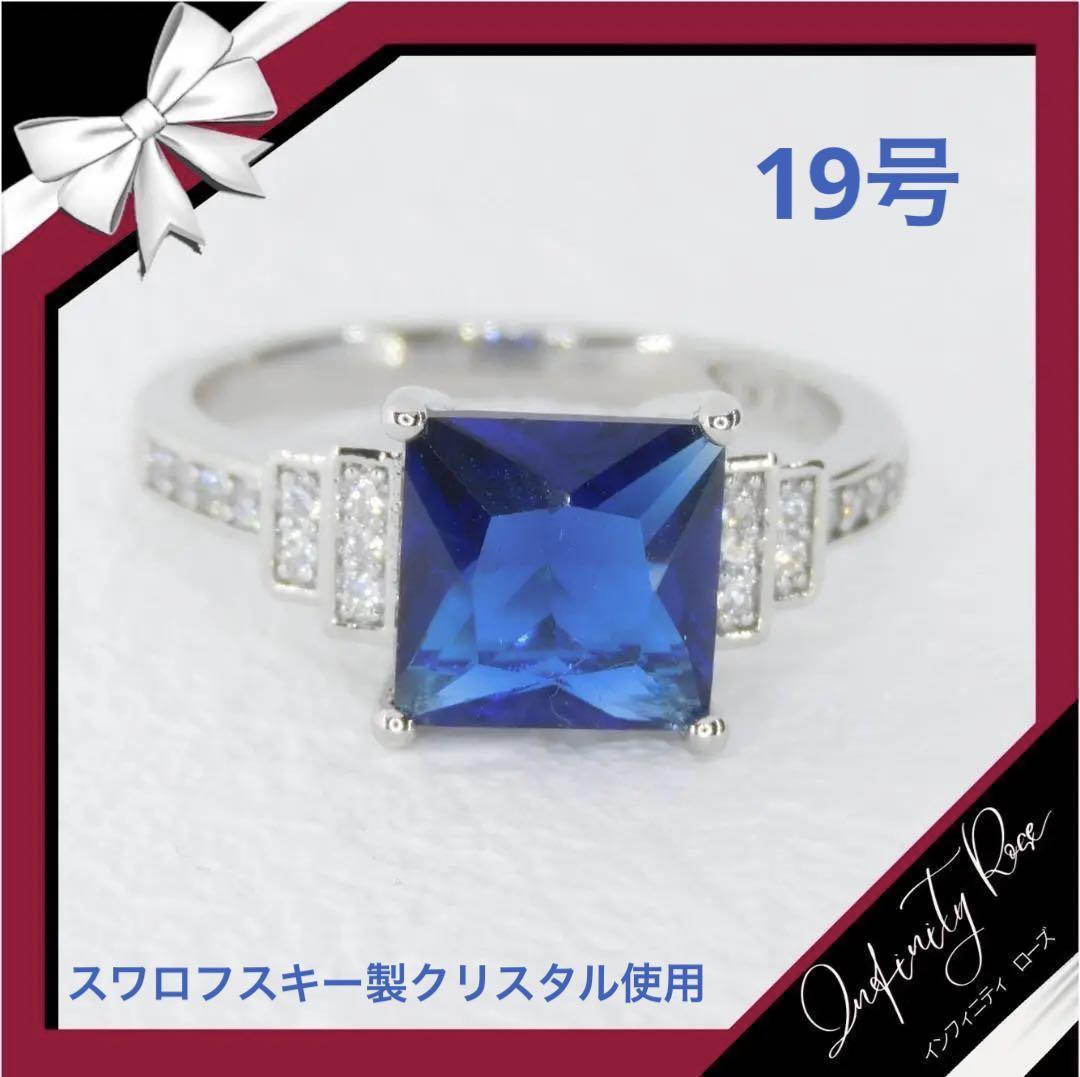(R065S)19号 シックなダークネイビークリスタルリング  高価爪留め指輪 スワロフスキー製クリスタル使用