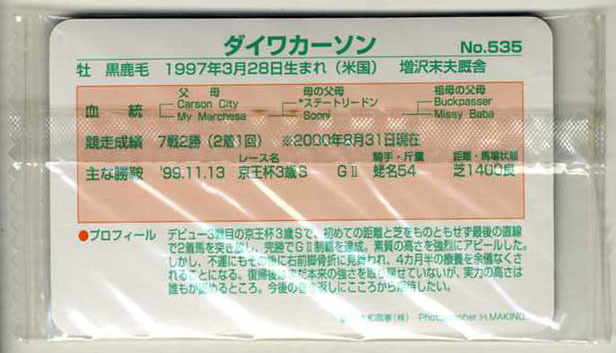 | ★まねき馬カード SP 535番 ダイワカーソン スペシャルカード 未開封 写真 画像 競馬カード 即決 | |