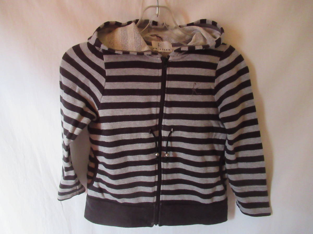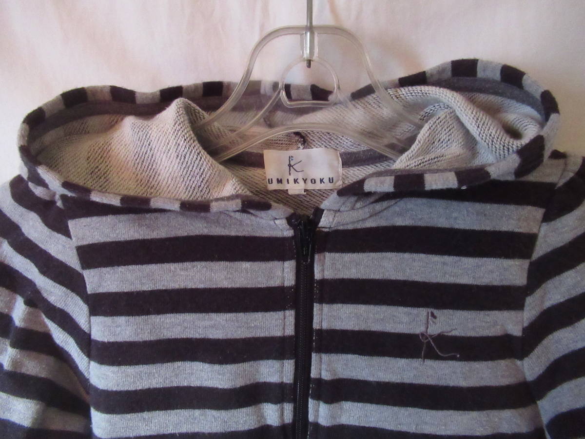 パーカ トレーナー地 110~120 組曲 綿100% グレー×黒ストライプ 着丈41cm