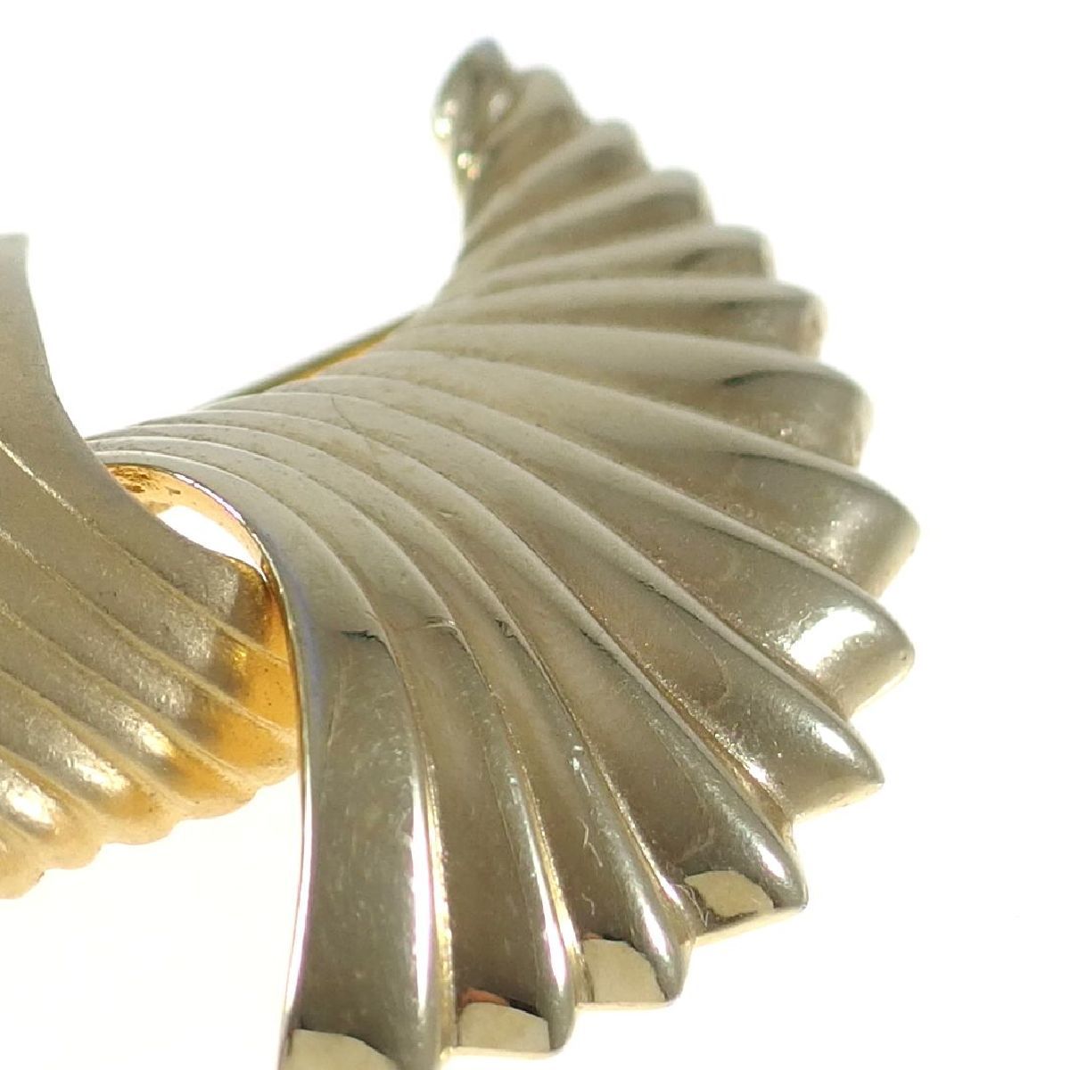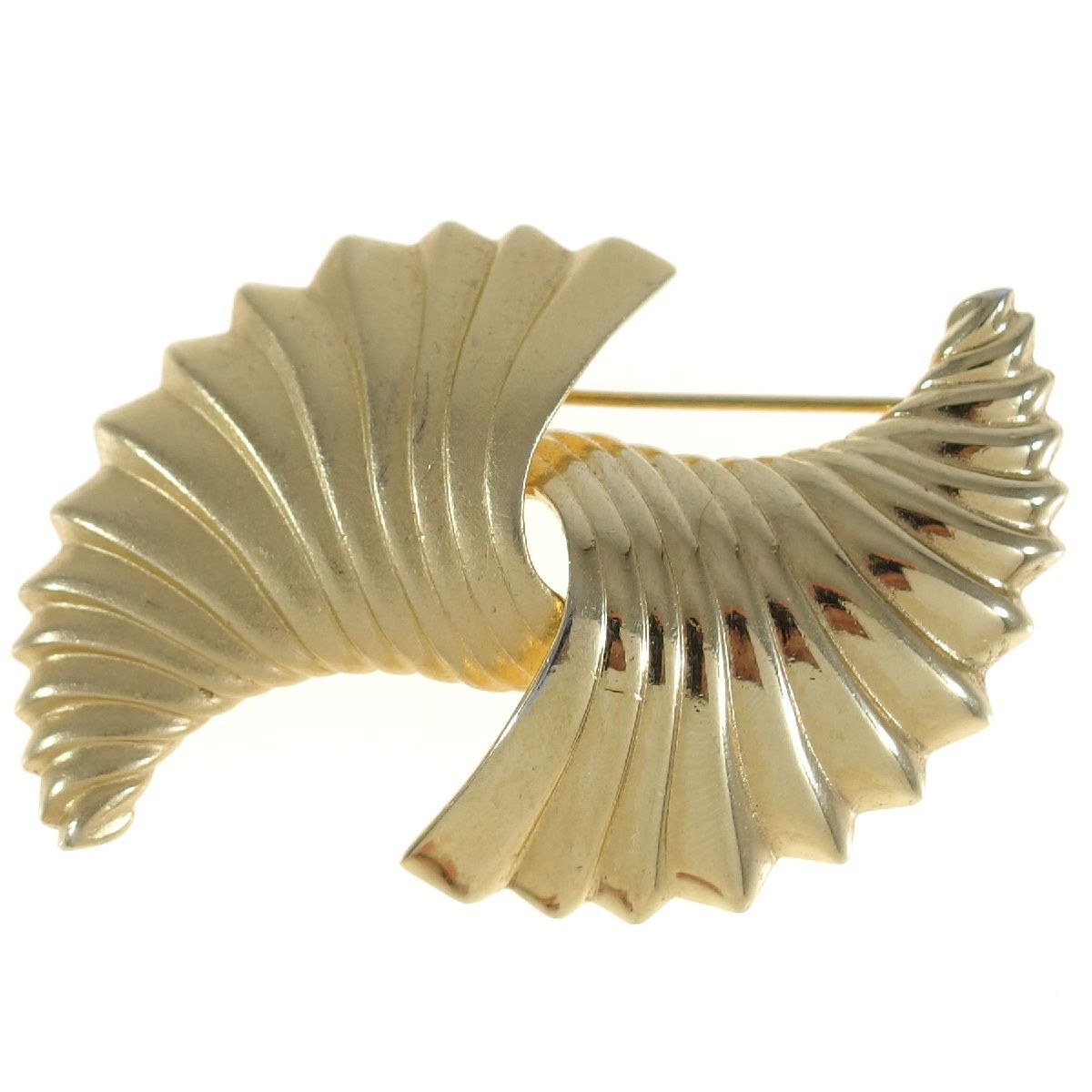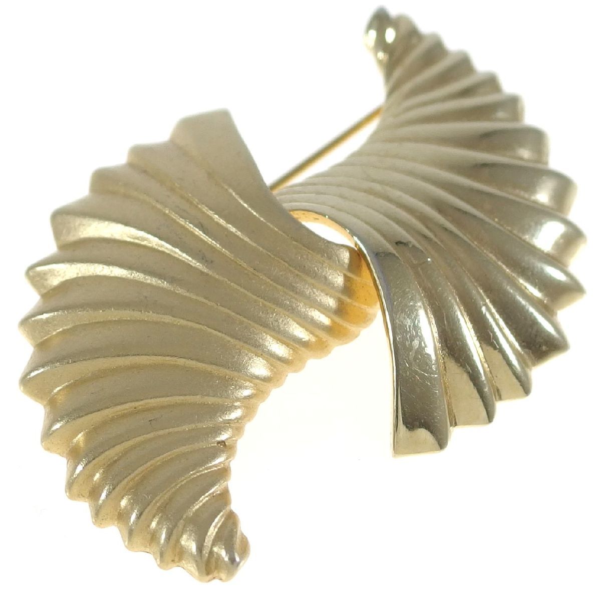 A7836◆【MONET】◆ 艶消し & 鏡面 ツーパターンのシェルモチーフ * 2つの貝 金色 ◆ ヴィンテージブローチ ◆