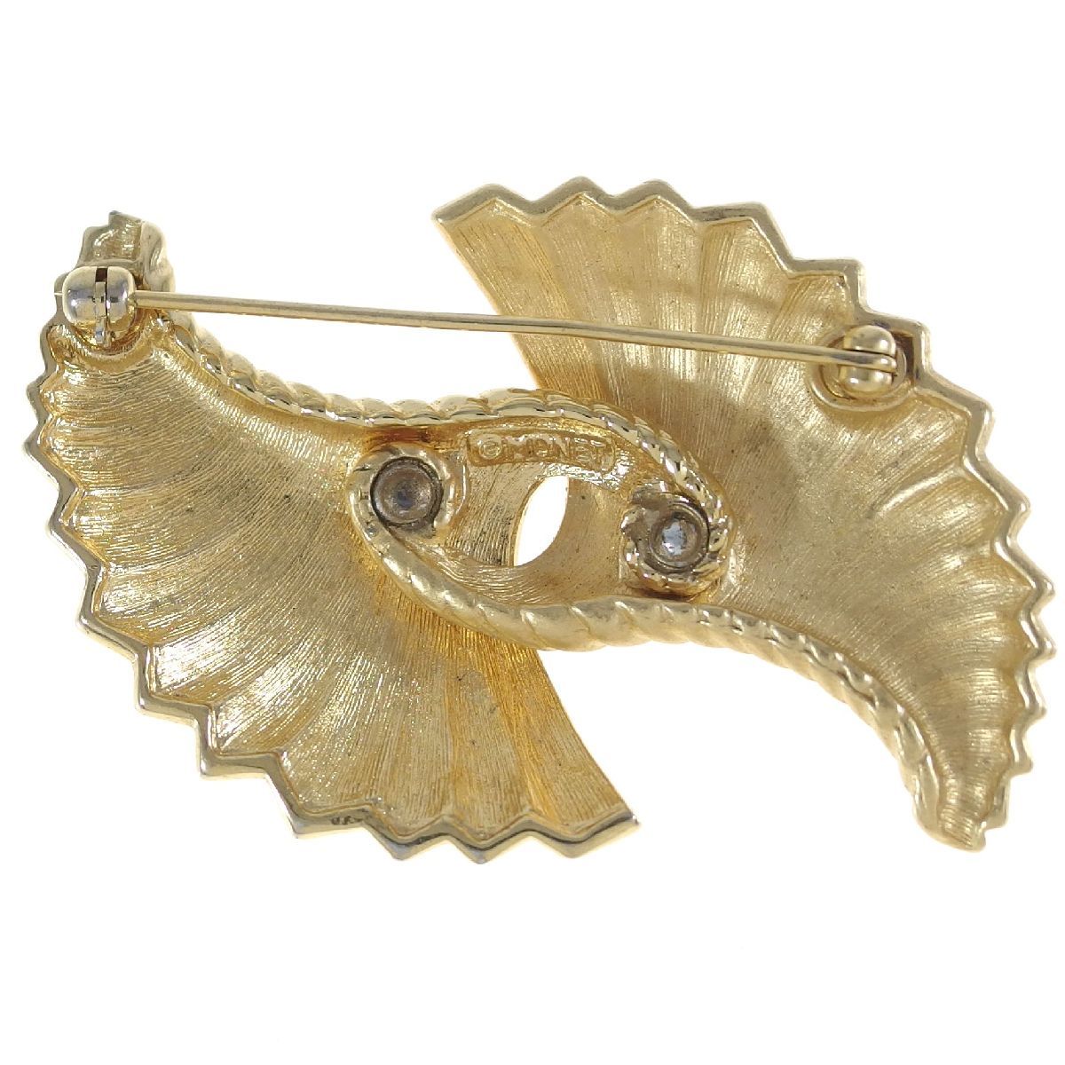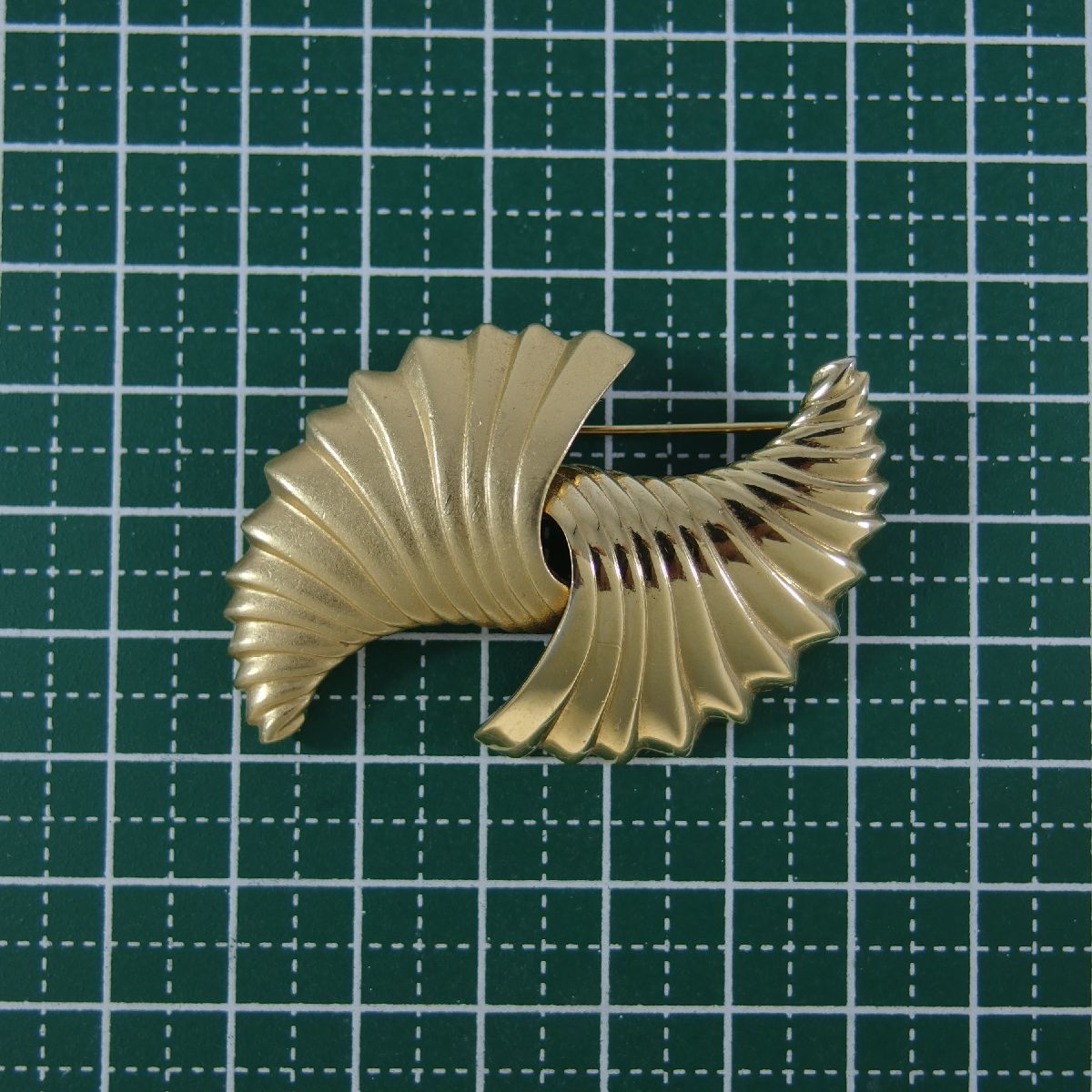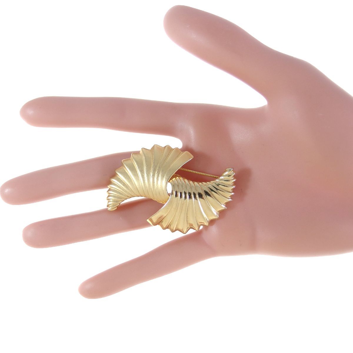 A7836◆【MONET】◆ 艶消し & 鏡面 ツーパターンのシェルモチーフ * 2つの貝 金色 ◆ ヴィンテージブローチ ◆