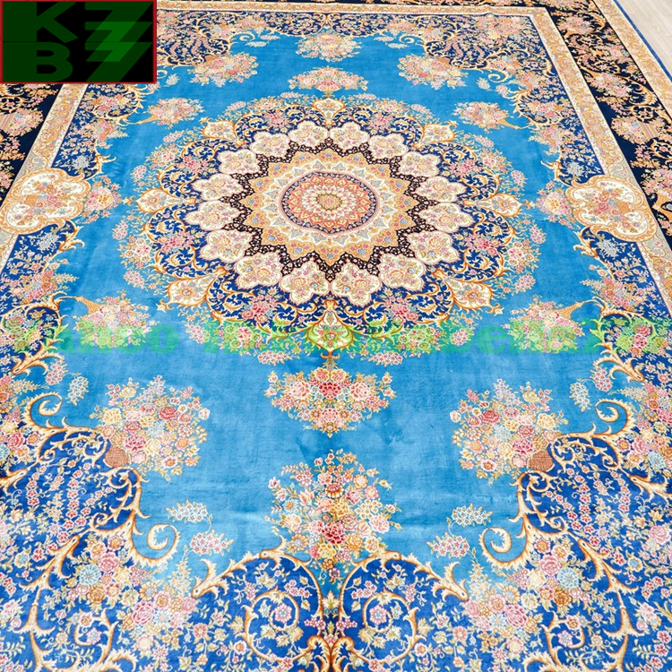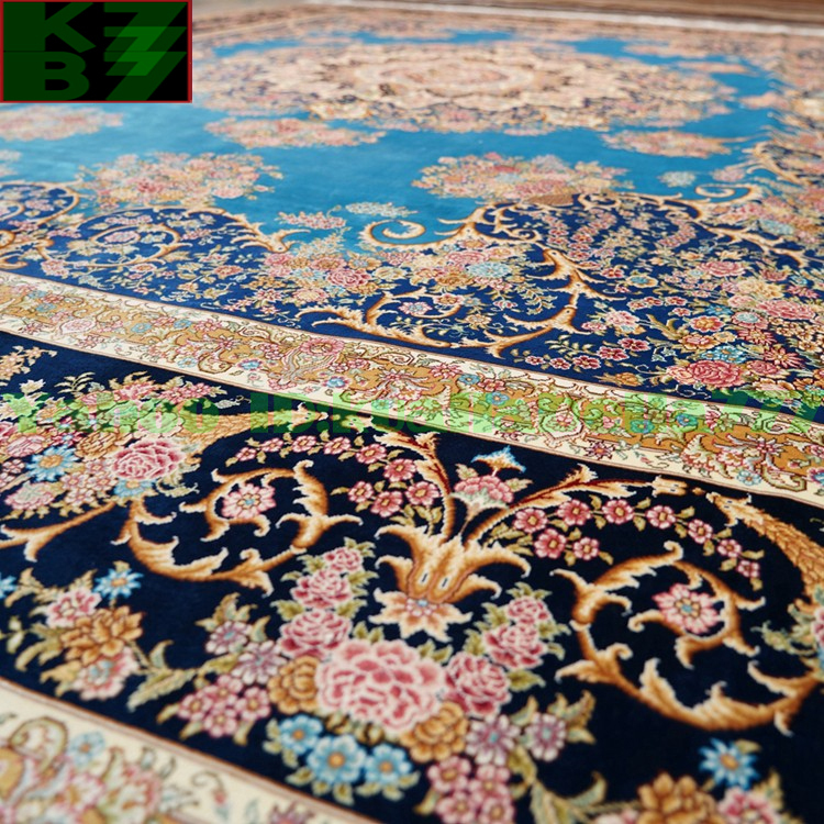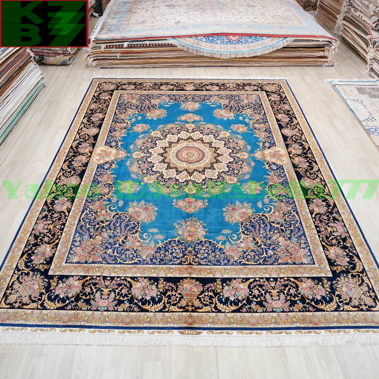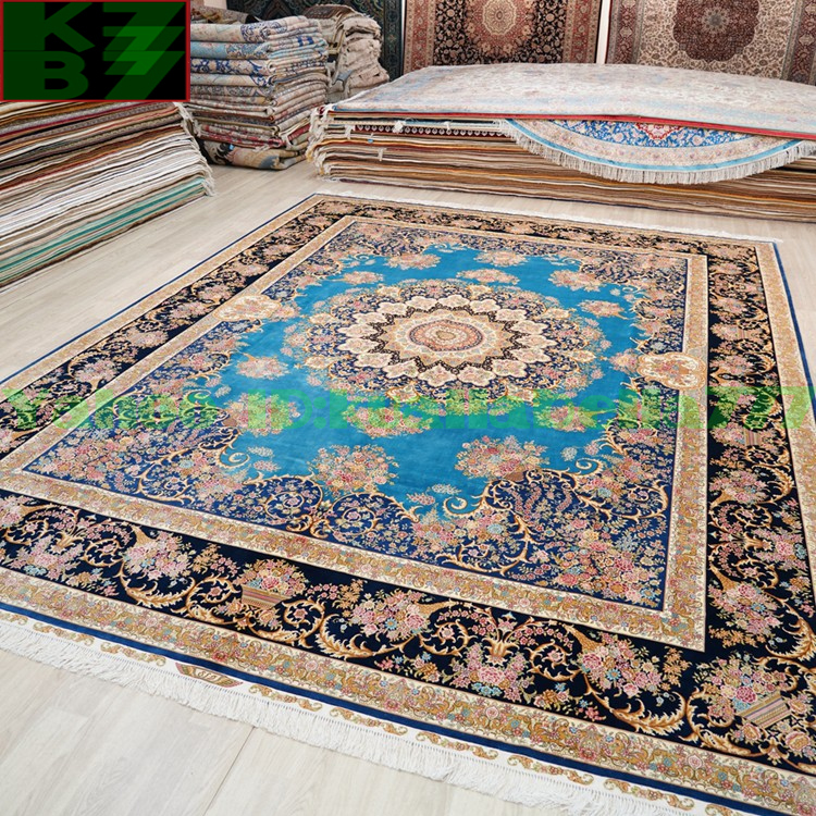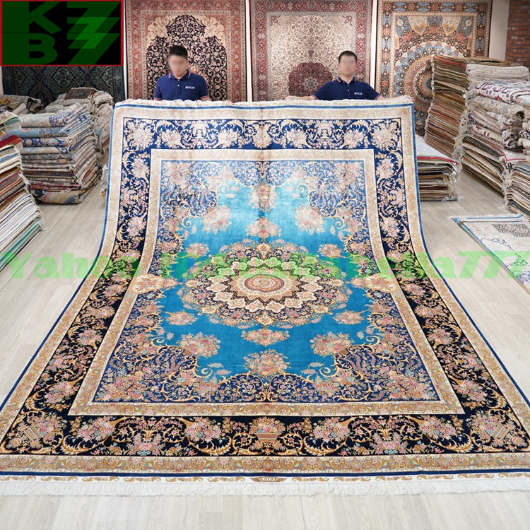 【贅沢敷物】ペルシャ 絨毯 シルク★274x366cm 100% ハンドメイド カーペット ラグ 住まい インテリア 応接間 リビング 高級 装飾 X40