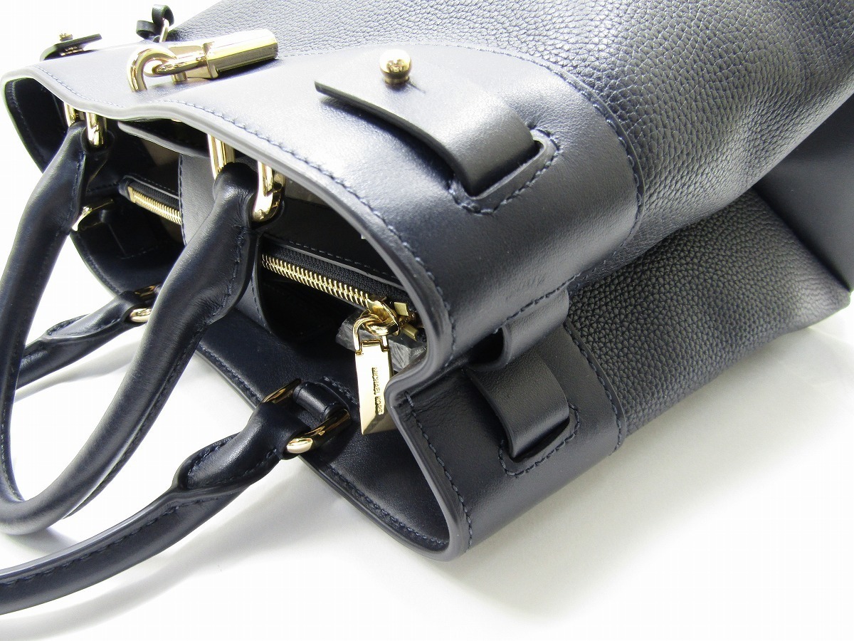 ♪売り切り 大特価 美品 MICHAEL KORS マイケルコース ハンドバッグ レザー ネイビー レディース トート ショルダーストラップ欠品♪