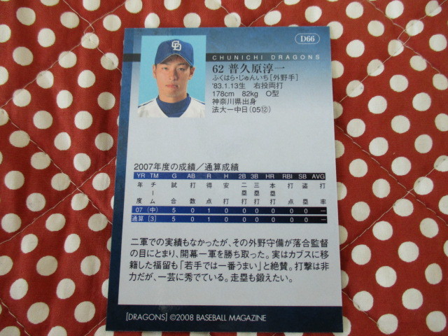 ★BBM 2008 中日ドラゴンズ★〔D66・普久原淳一〕ベースボールカード トレカ♪