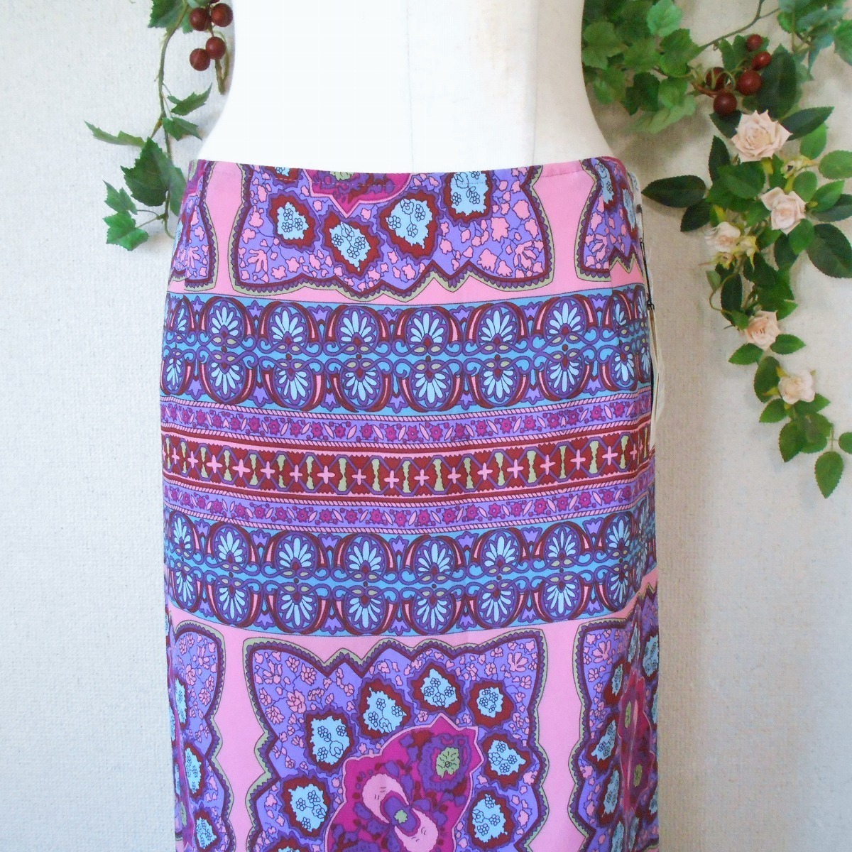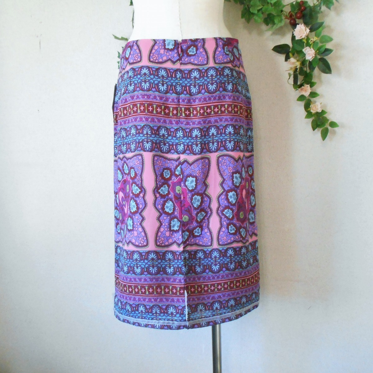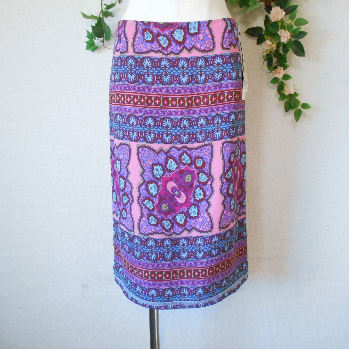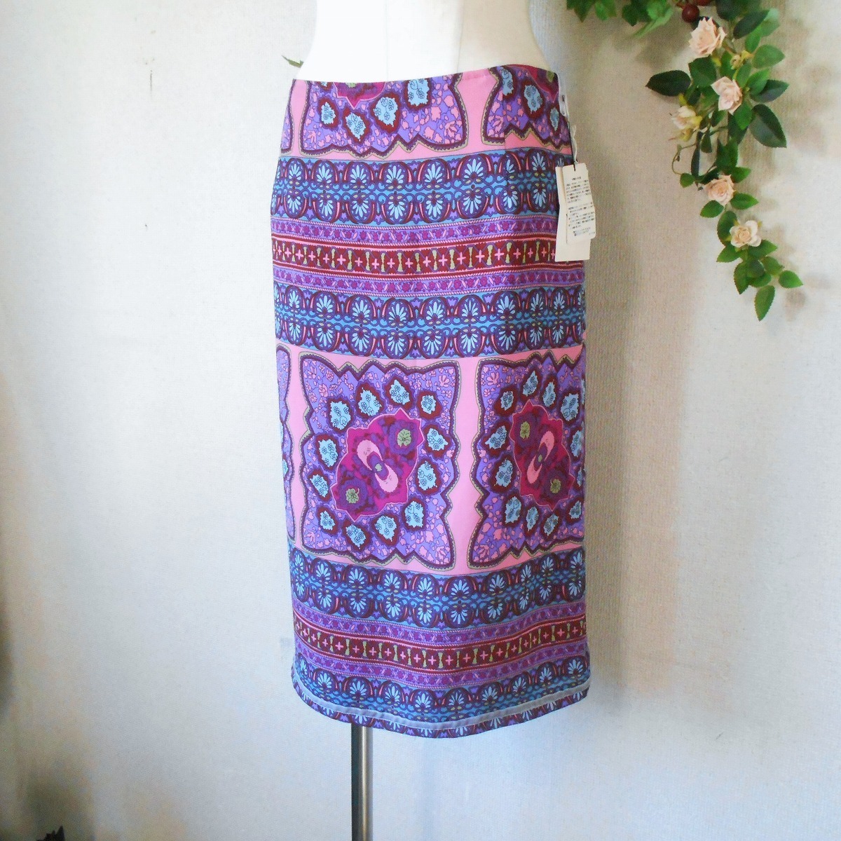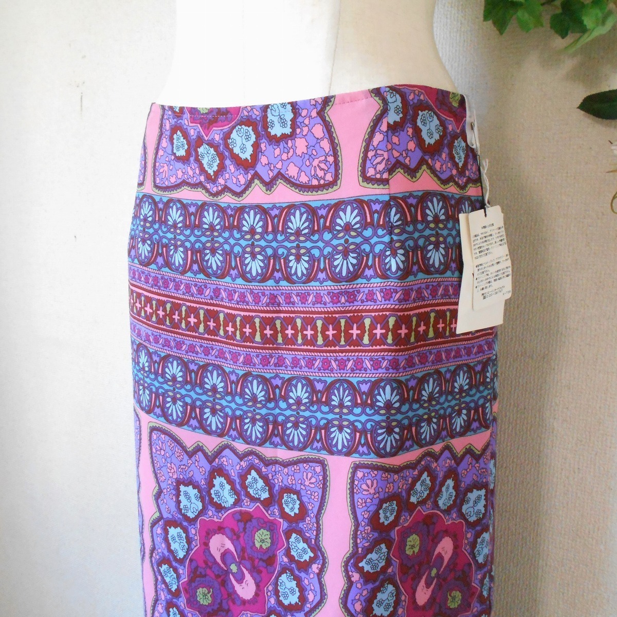 【ポイント】ビバユーのスカートになります。お色はピンクやパープル等、多色使用のプリントで、春夏を中心に着ていただけるお品です。