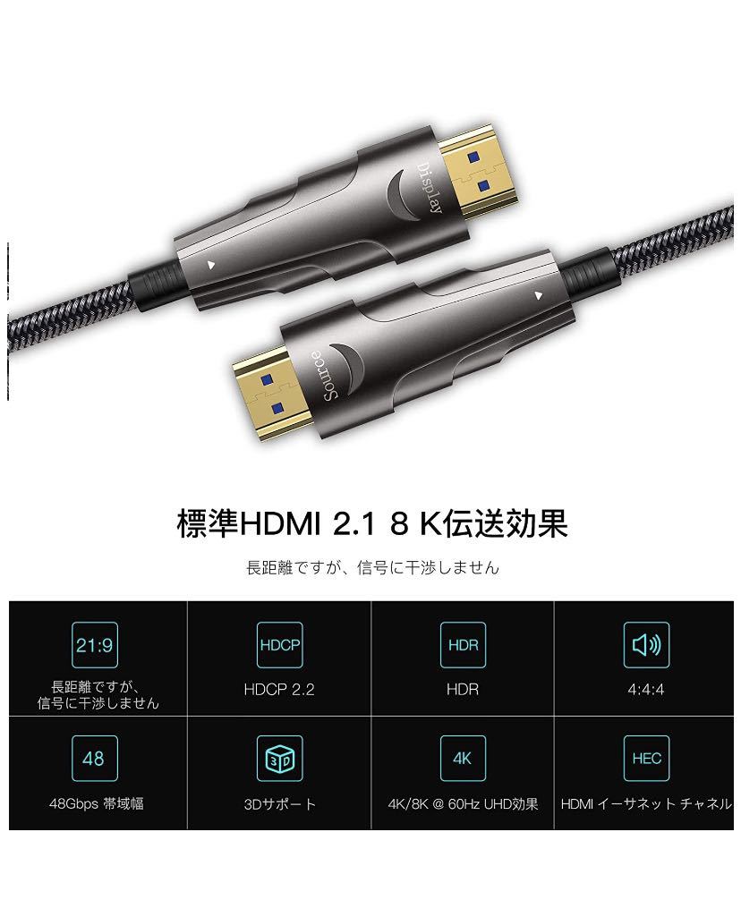【8K@60Hz HDMIケーブル機能】光ファイバーHDMIケーブルは8Kの超清解像度をサポートしています。HDR / CEC / EDID / HDCP2.2、1536KHzサンプルレート、8K @ 60Hz、非圧縮オーディオおよびビデオ同期、ARC、クロマサブサンプリングYCbcr:4:4:4 4K / 60HZ 8bit / YCbcr:4:2 :2 4K / 60HZ 12bit / YCbcr:4:2:0 4K / 60HZ 16bit。最大帯域幅48Gbpsまでサポート。