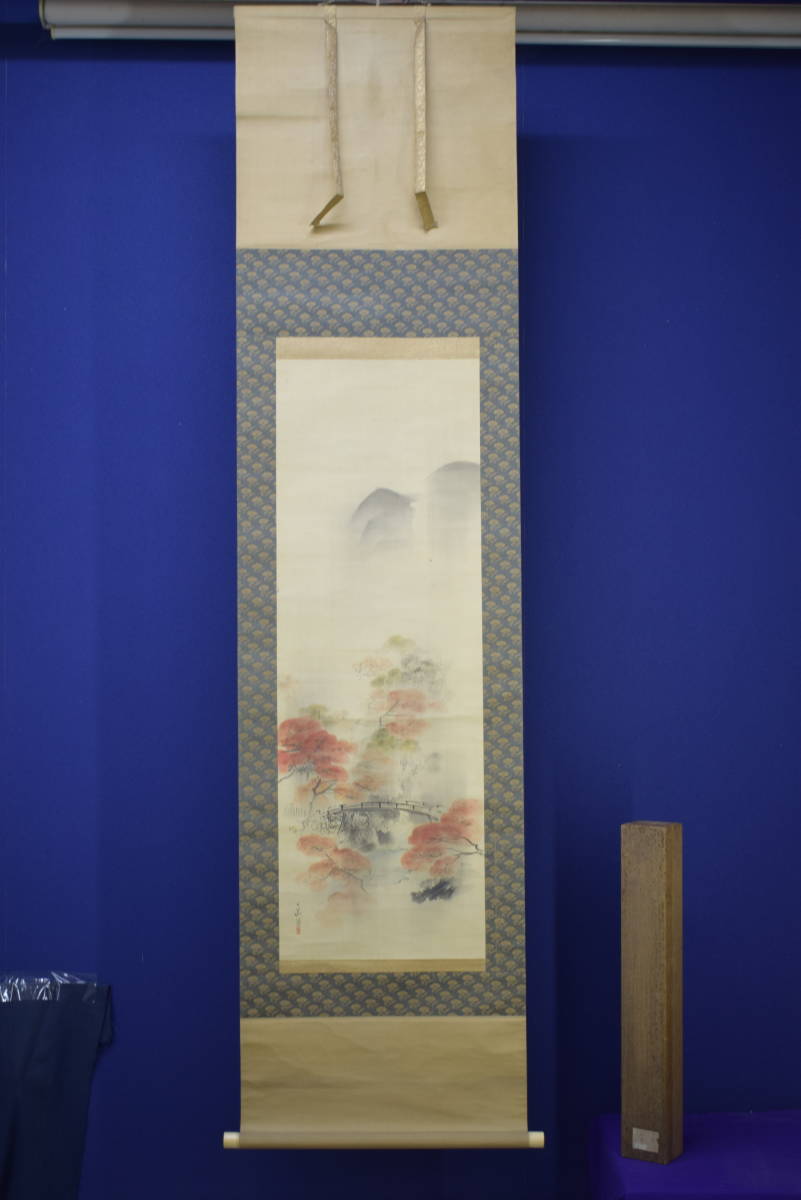 【真作】//田中日華/京都市/高雄/紅葉山水橋図/