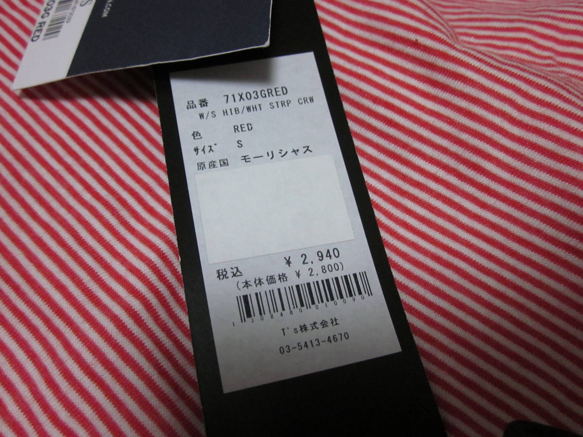 ■ TOPMAN 赤い横縞のメンズ半袖Tシャツ Sサイズ 素人採寸ですが、肩幅≒41cm、身幅≒46cm、袖丈≒21cm、着丈≒70cm