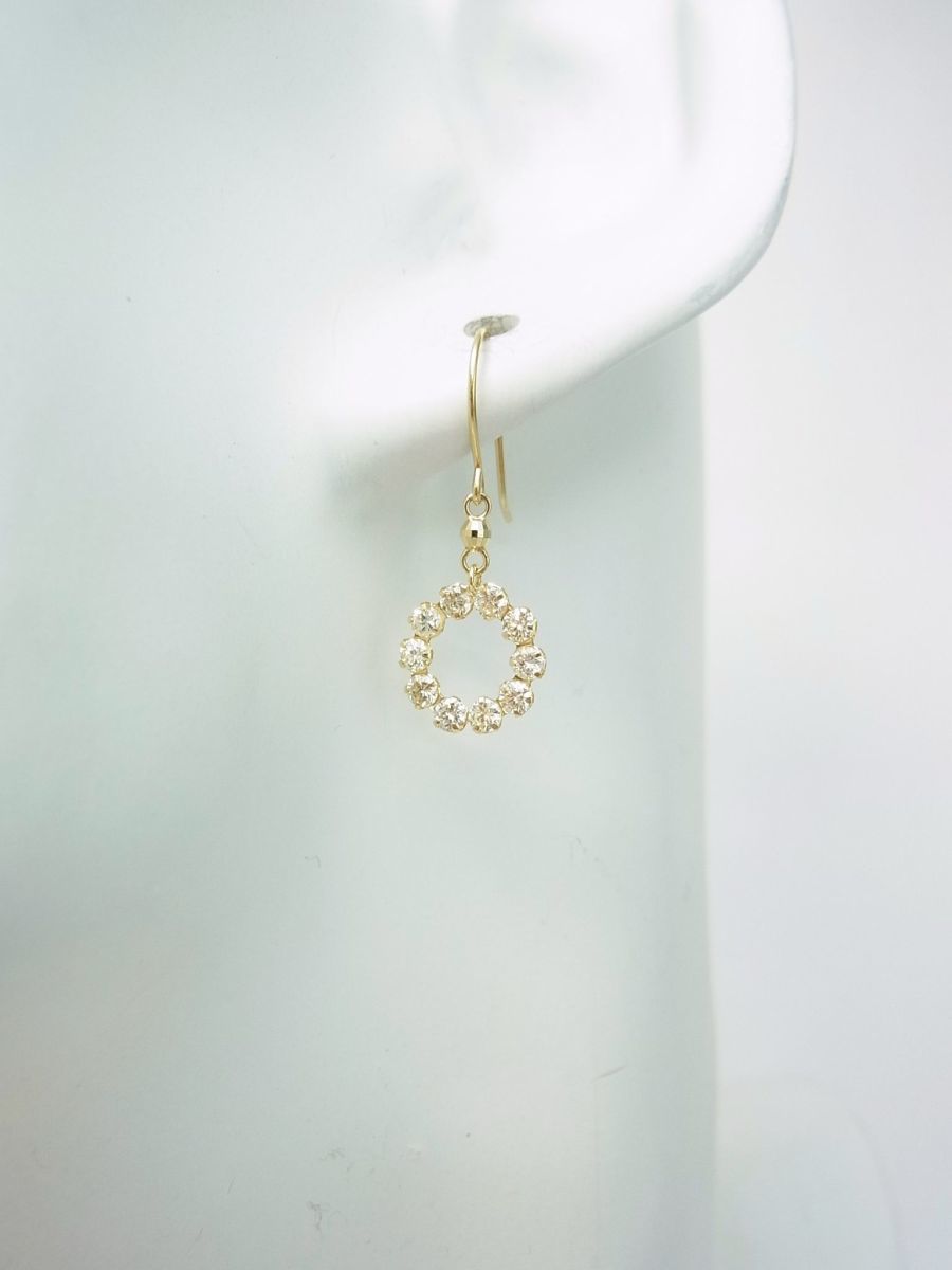引っ掛けぶら下がり式のアメリカンピアスタイプですのでユラユラ揺れてより一層キラキラ光り輝きますよ!