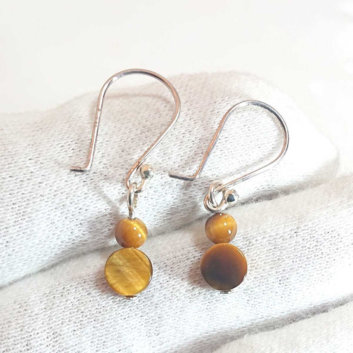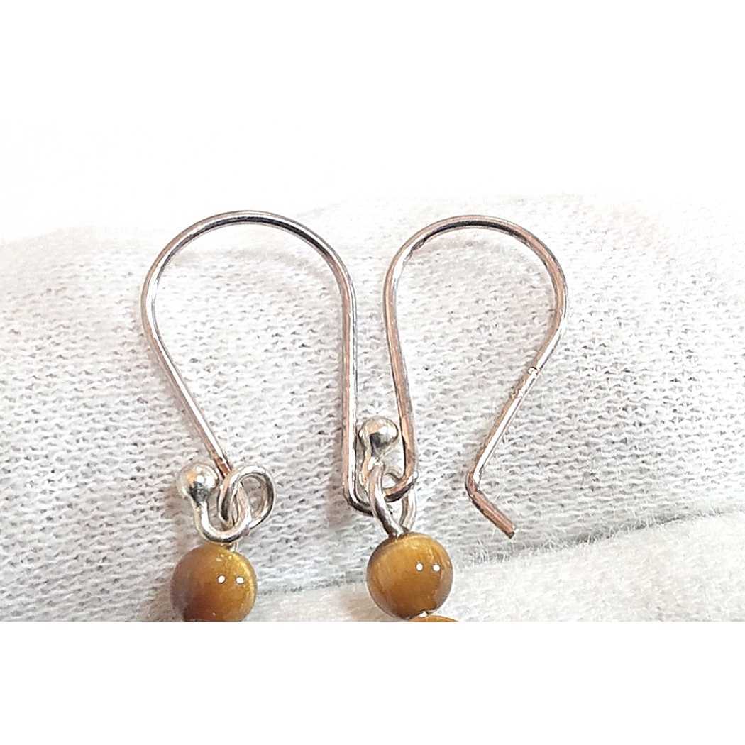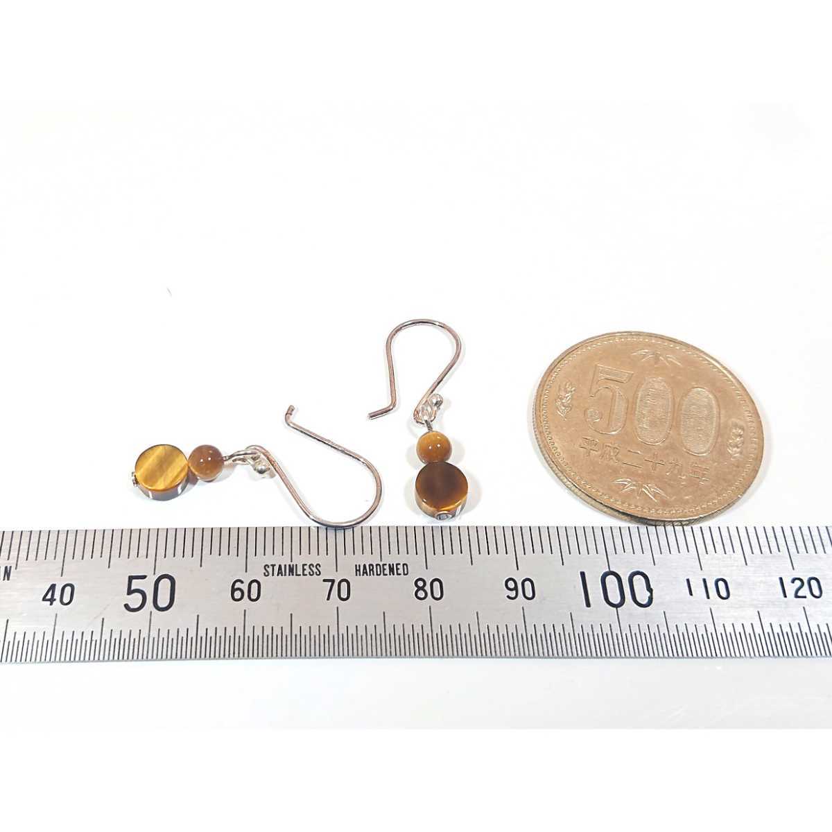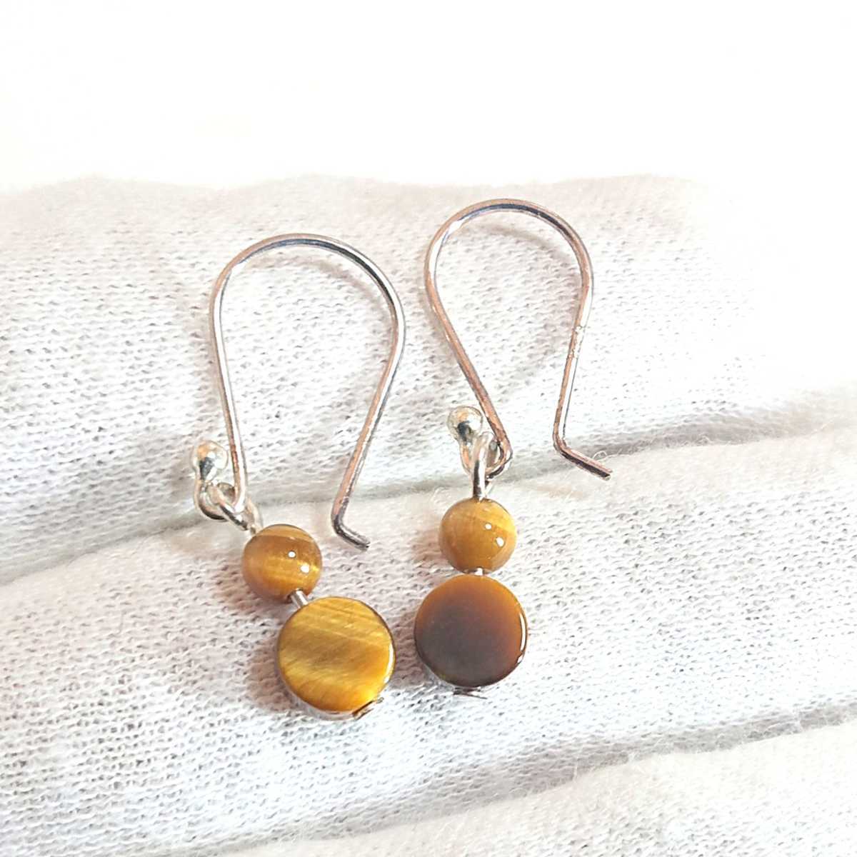小さなボールと丸い型をしたタイガーアイを2連に繋げたピアス☆
