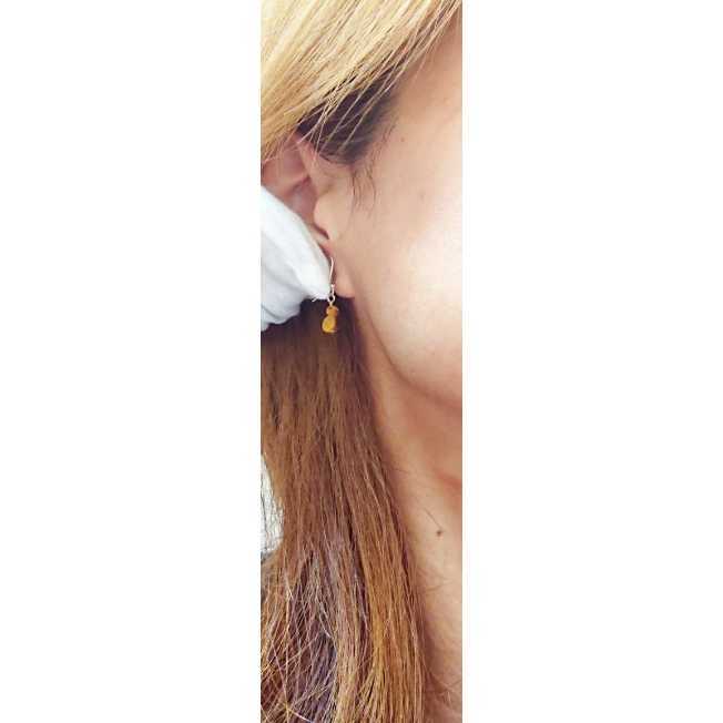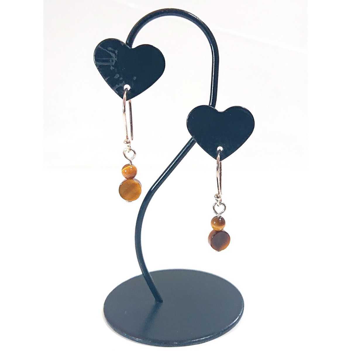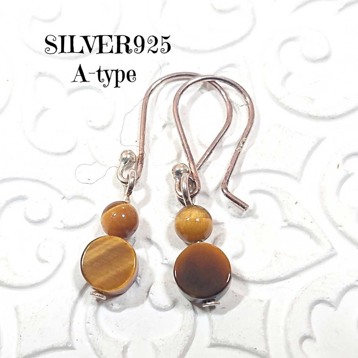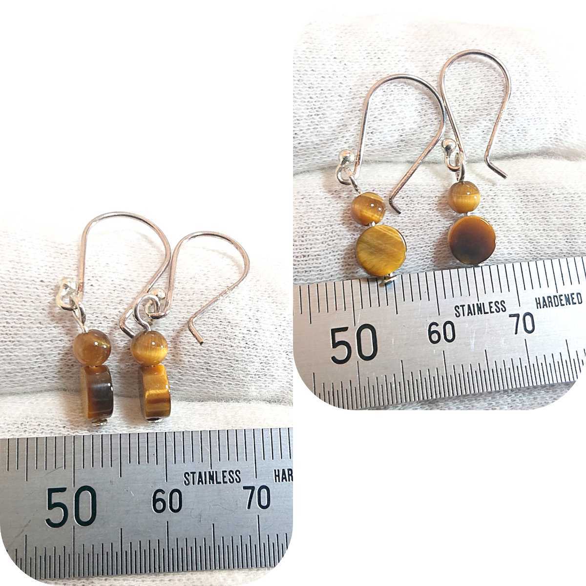 小さなボールと丸い型をしたタイガーアイを2連に繋げたピアス☆