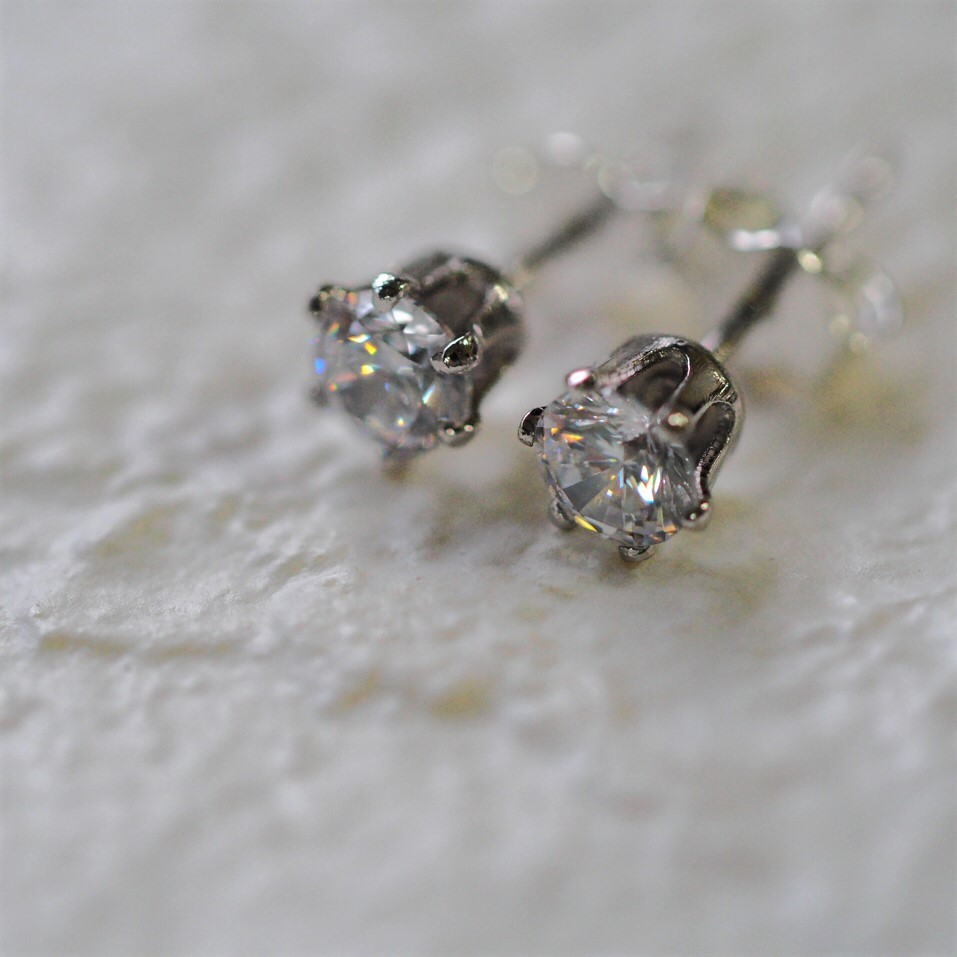 澄んだのホワイトCZは、透明で清らかな輝きに、耳元で癒されます。