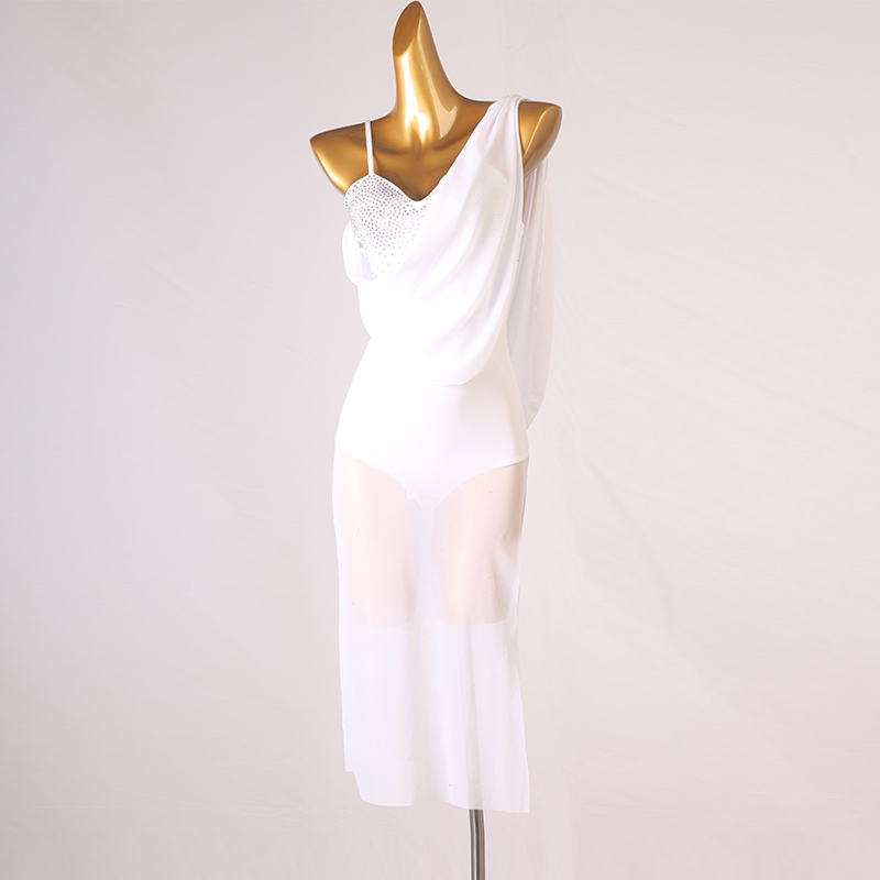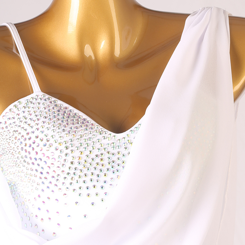 新品 社交ダンス衣装・パーティドレス レディース用ドレスワンピース ラテンドレス ライトストーン飾り サイズ調整対応 ホワイト