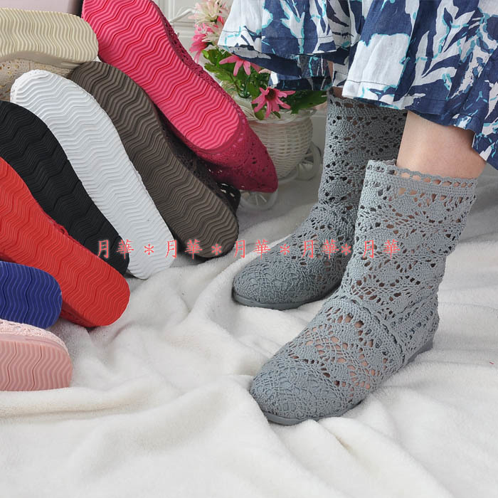 春夏に履ける大人可愛いレースのショートブーツ。ほぼぺたんこ、ゴムのウエッジソールで疲れにくい。