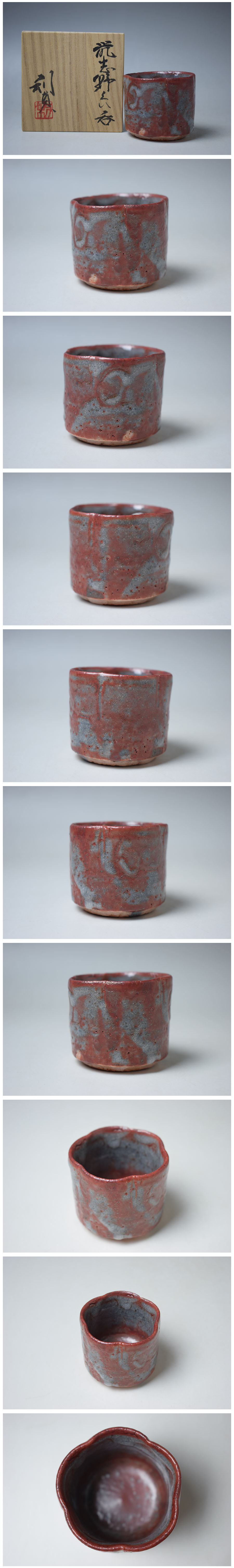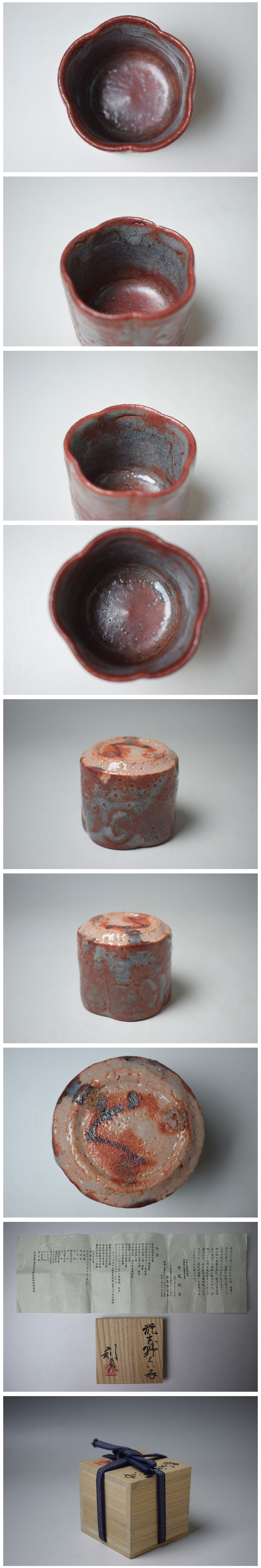 I150 若尾利貞 鼠志野ぐい呑 輪花形 酒器 共箱 真作保証