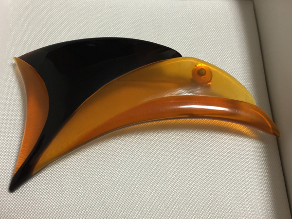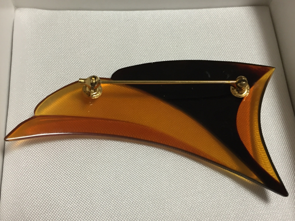 アンティークの白甲、赤甲、黒甲の本鼈甲を使用した、グラデーションデザインのブローチです。鼈甲部分に欠けや虫食いはありません。 縦3.9cm、横6.7cm、重さ5.2g