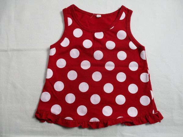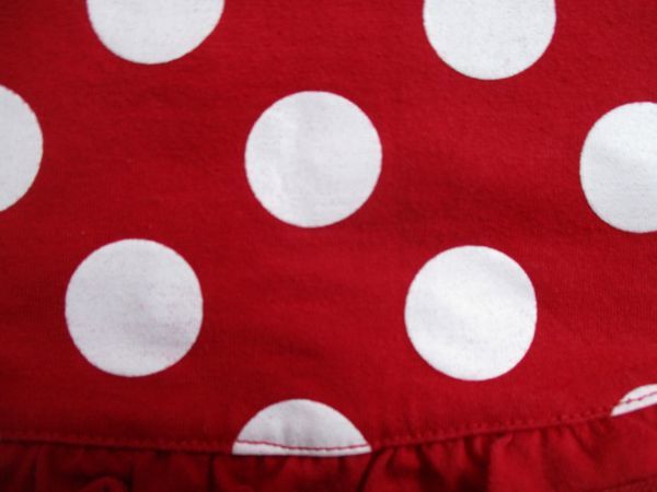 | BD848【(株)西松屋チェーン】大きなドット模様 プリント フリル付き ワンピース カットソー 女児 赤 90 | |