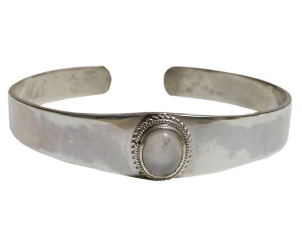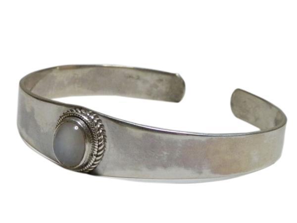 ■☆アジアン雑貨 ネパール銀職人 ムーンストーン・バングル(NOB-1)