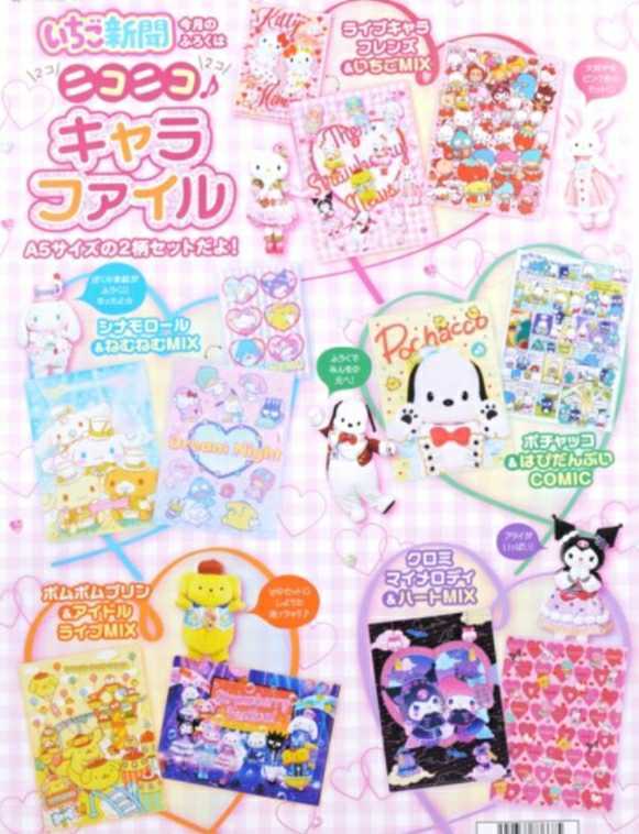 いちご新聞 ねむねむMIX クリアファイル A5 マイメロディ クロミ シナモロール ハローキティ ポムポムプリン タキシードサム