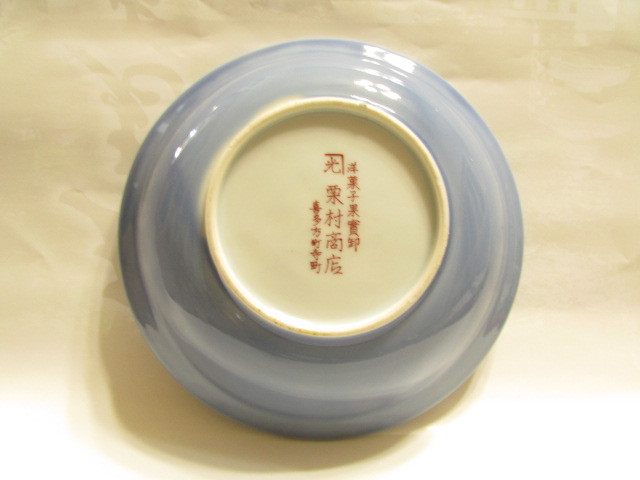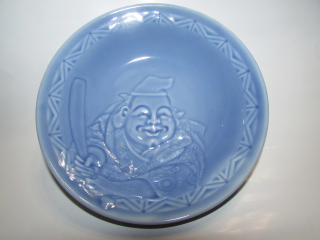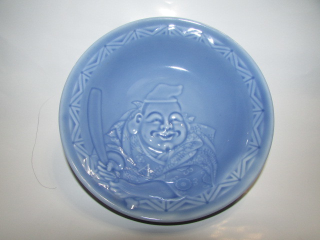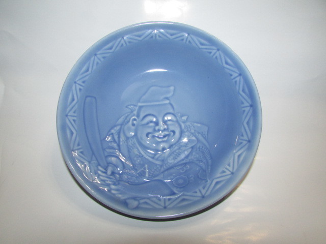 ( 会津若松・旧家・蔵出し)( 大正時代・野球のバットを持つ・恵比寿様模様中皿 )大正ロマン・完器 ・貴重大珍品