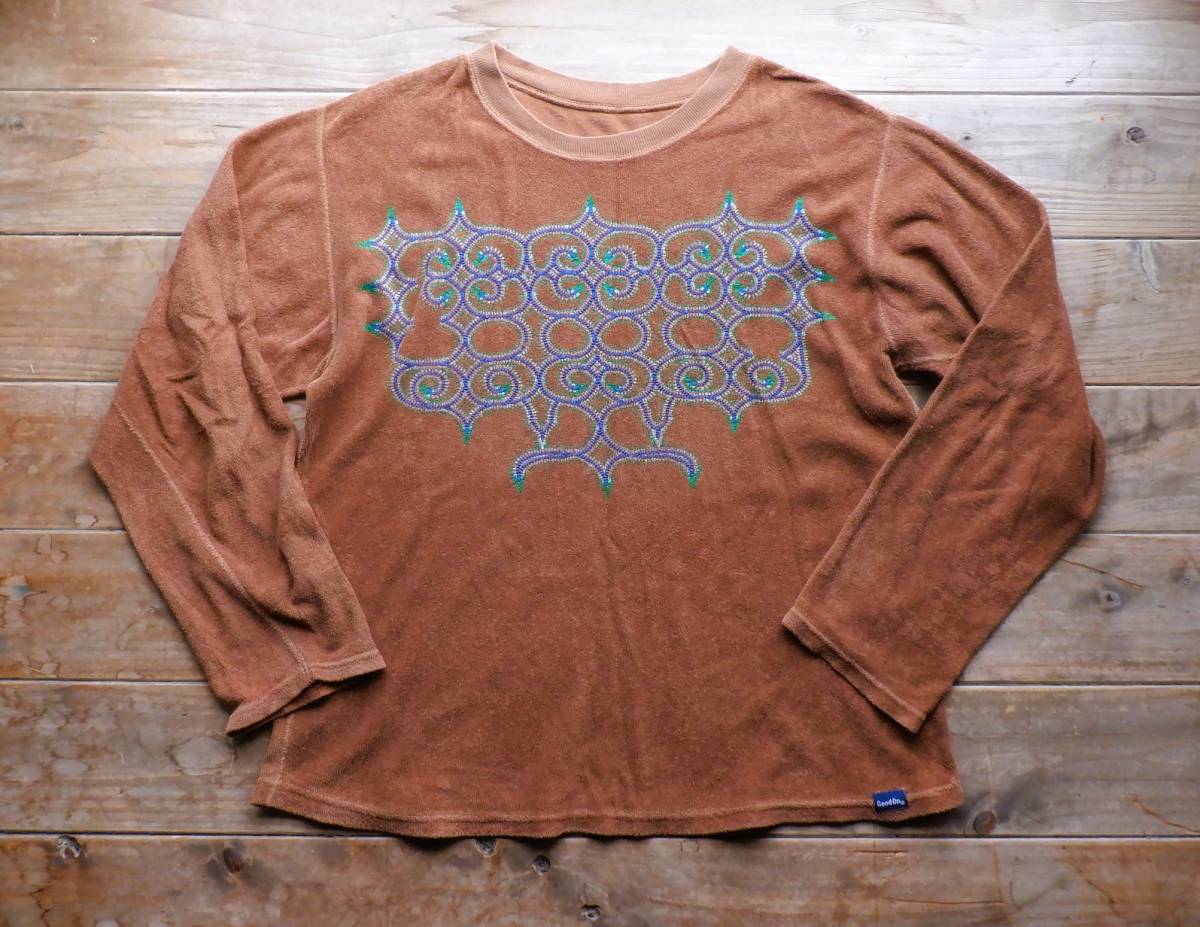 送料無料♪レア♪USA製Good on グッドオン パイル地カットソー 曼荼羅 size S ブラウン スウェット USED アメリカ製古着 NATIVE JAPANESE