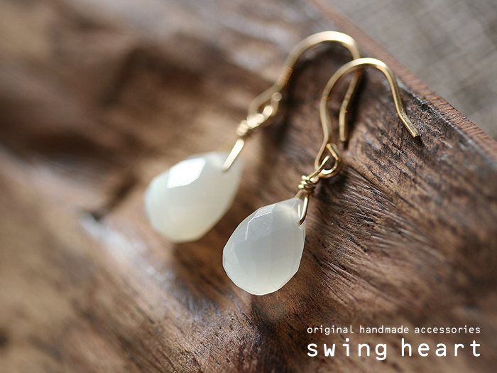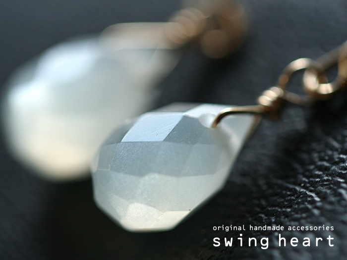 《ムーンストーン》月のパワーを宿し、感受性を豊かにし、直感力を高め、未来を予知する力を与えてくれるといわれています。恋愛面では、ふたりの気持ちをつなぐパワーがあるといわれています。気持ちをおだやかにする作用があり、ノイローゼから守ってくれる石ともいわれています。