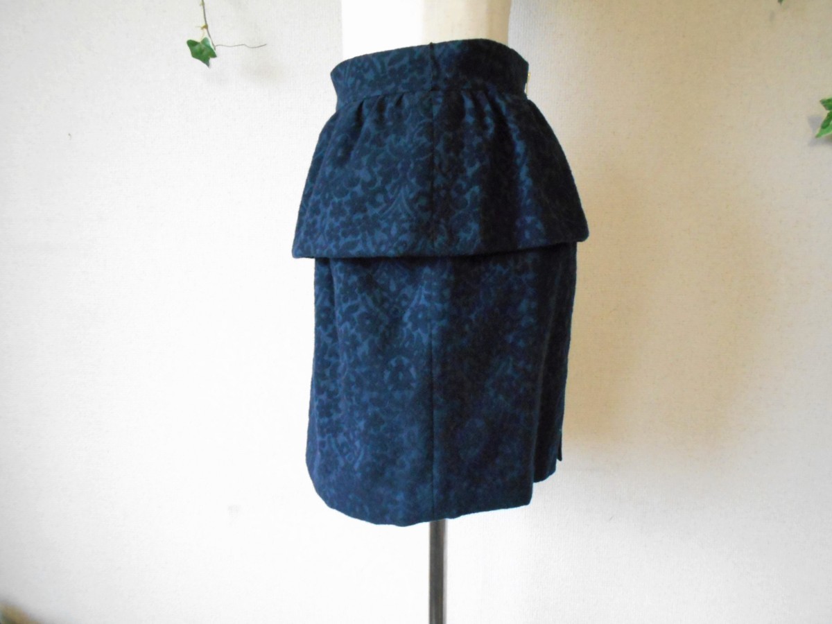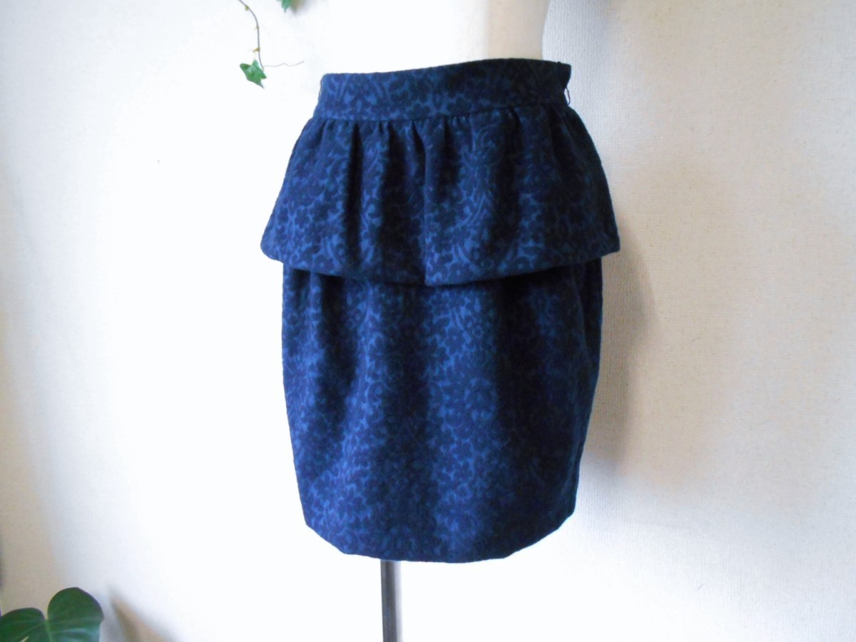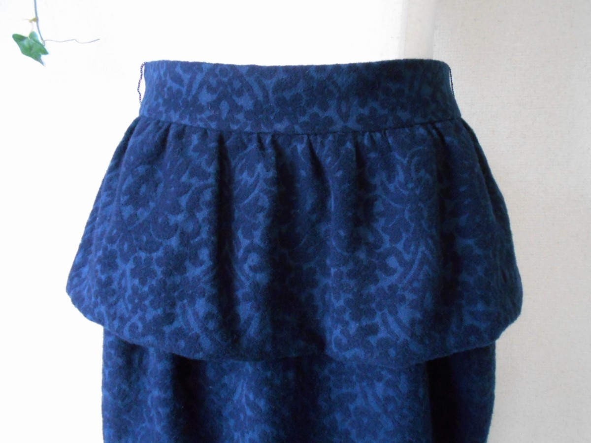 【ポイント】レッセパッセのスカートになります。お色はネイビーで、全体にお花のような織柄が入っています。