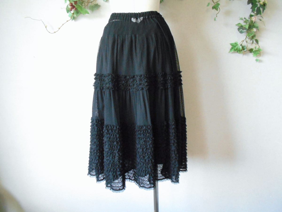 【ポイント】2018年に販売された、ピンクハウスのスカートになります。お色は黒色で、総ドットチュールのスカートにコットン100%のインナーがセットで付きます。