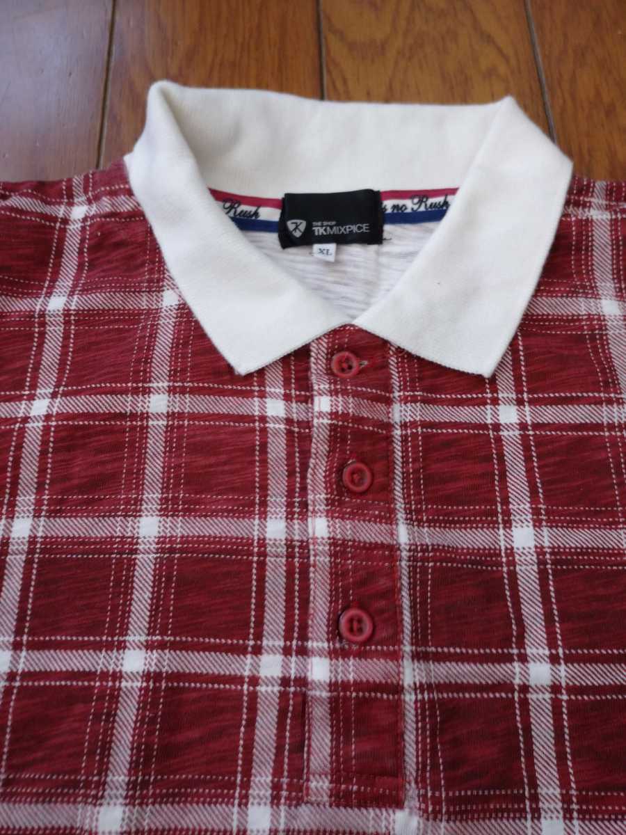品名 タケオキクチ/ポロシャツ/半袖/カラーWレッド チェック柄/サイズXL