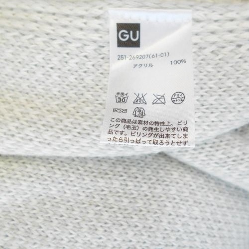 GU ジ―ユー レディース 秋冬などに暖かいニットカーディガンロング丈です。お色は薄めのグレーです。網目もシンプルで着心地も良さそうな一品です。
