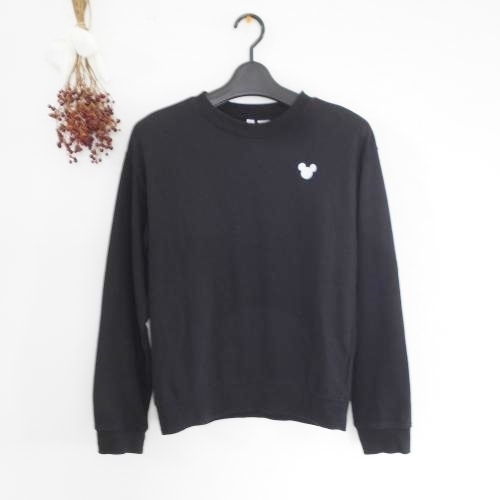 H&M DIVIDED エイチアンドエム ディズニー ミッキーの刺繍入り長袖トレーナーです。お色は黒・ブラックです。男女兼用です。色んなボトムに合わせてどうぞ。