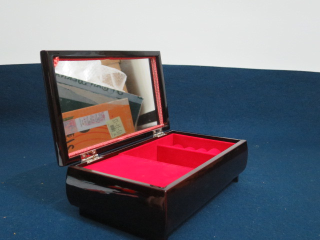 「宝石箱F-107」 デットストック新品の木製漆塗りの宝石箱です。 新品では在りますが経年のストックの為か オルゴールが不調の時が有りますご了承下さい (詳しくは写真にてご確認の上ご判断下さい) |