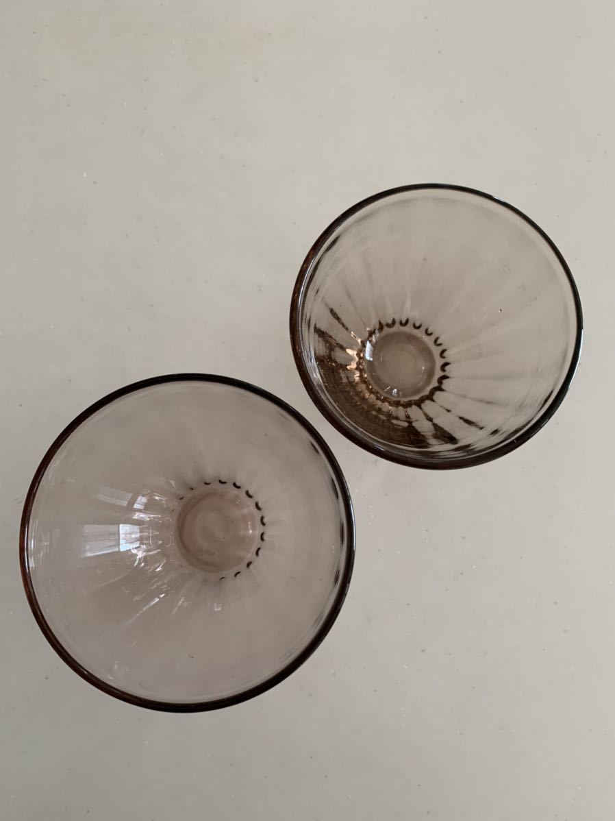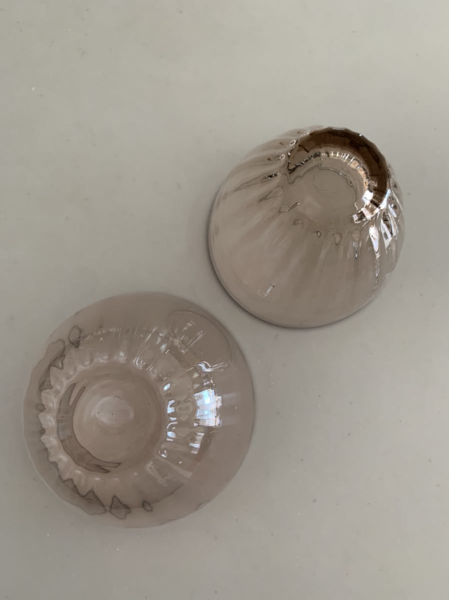 清井千夏子さんのガラス鉢2つセットです。ロゼのような色合いとしのぎの模様か美しいです